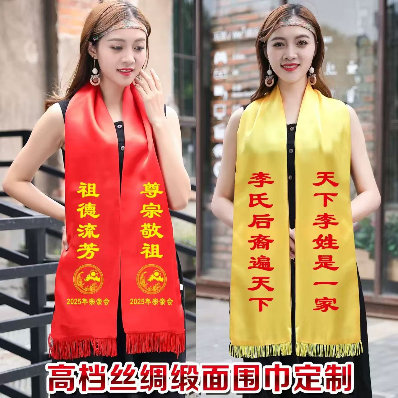 天猫清明祭祖祭祀大庙会庆典黄围巾定制印字logo丝绸缎面绶带宗亲丝巾