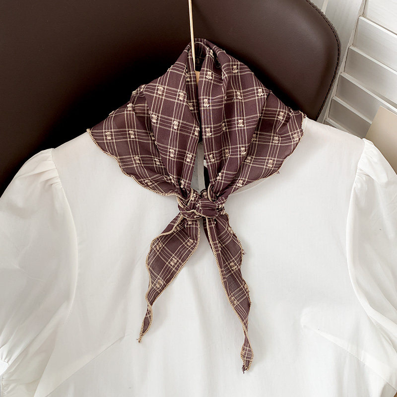 天猫日系风格子点点卷边棉质三角方巾女春秋丝巾系脖配饰搭配T恤领巾