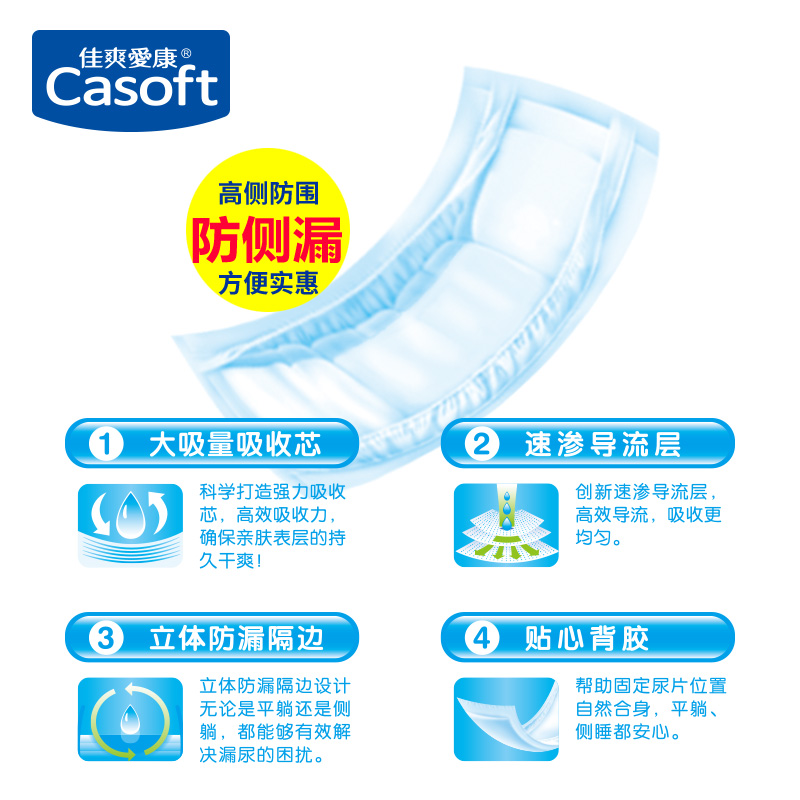 佳爽爱康成人纸尿片专为老年人及行动不便者设计,采用高吸收高分子材料,快速锁水防漏,保持肌肤干爽舒适。产品男女通用,144片大容量装,经济实惠,适合家庭日常护理使用。立体防漏隔边设计,有效防止侧漏,搭配透气底层,减少闷热感,呵护敏感肌肤。一次性使用,干净卫生,穿脱便捷,提升护理效率与使用者尊严。无论是卧床老人还是轻度失禁人群,佳爽爱康都能提供安心防护,让护理更轻松,生活更自在。是家庭护理的理想选择,兼顾品质与性价比,守护每一天的舒适与洁净。