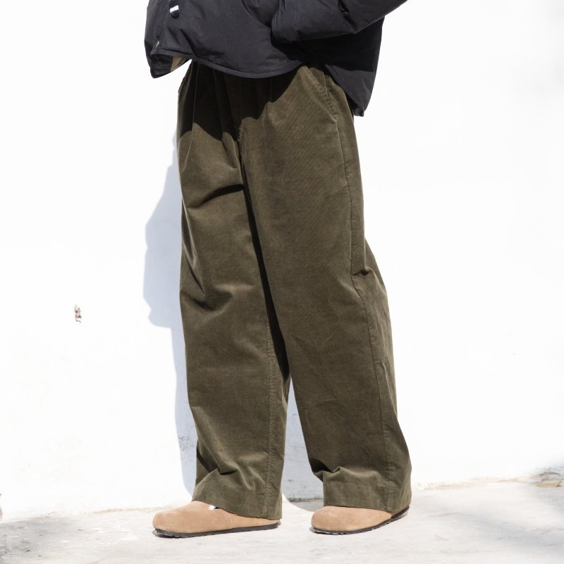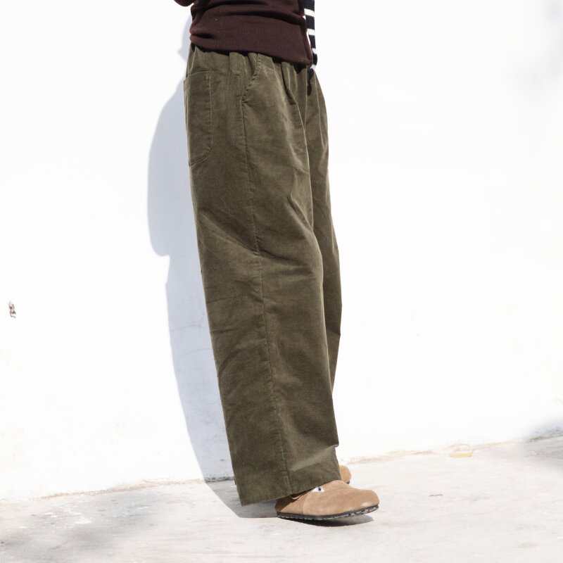 淘宝雨文她城原创棉质复古感超细灯芯条绒军绿色直筒裤宽松百搭休闲裤