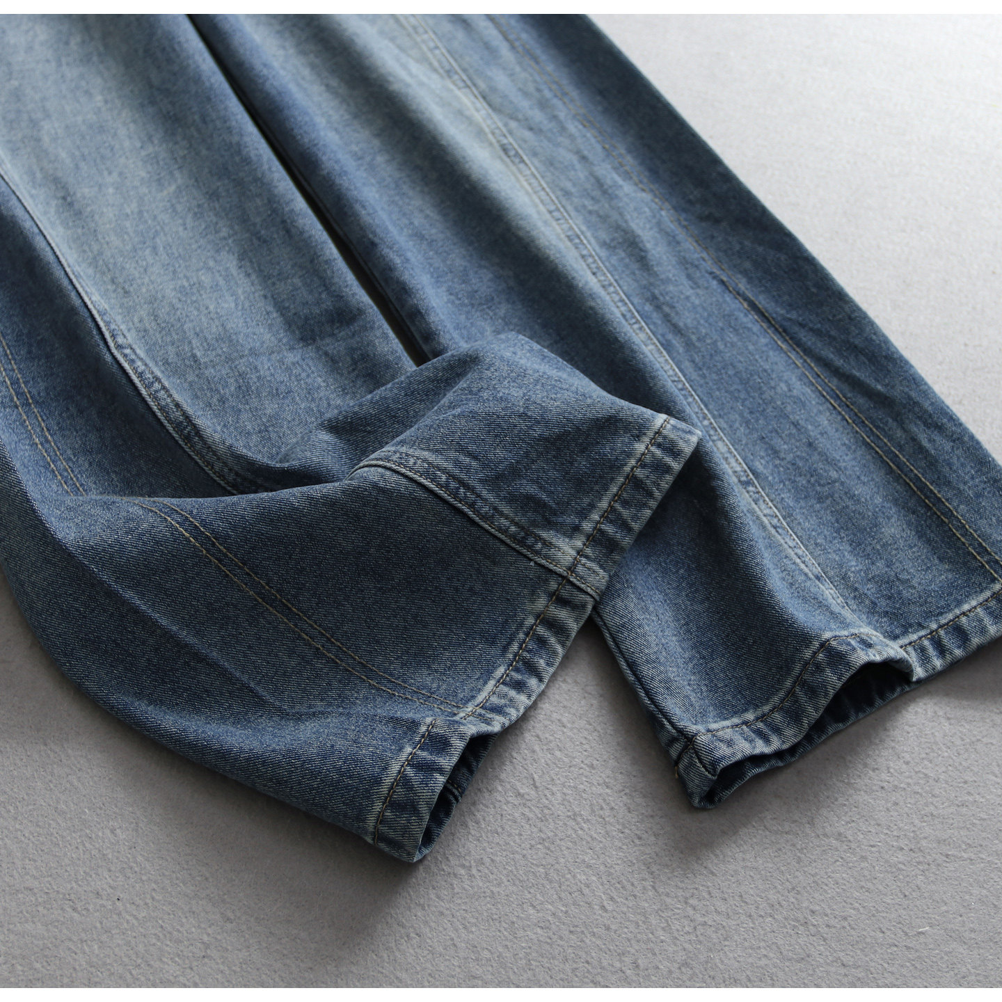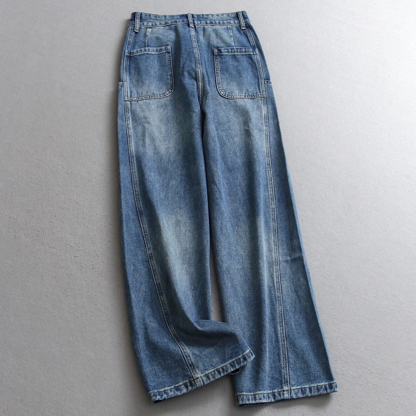 淘宝复古蓝色做旧磨白高腰显瘦直筒裤松弛感阔腿裤百搭女裤牛仔裤V401