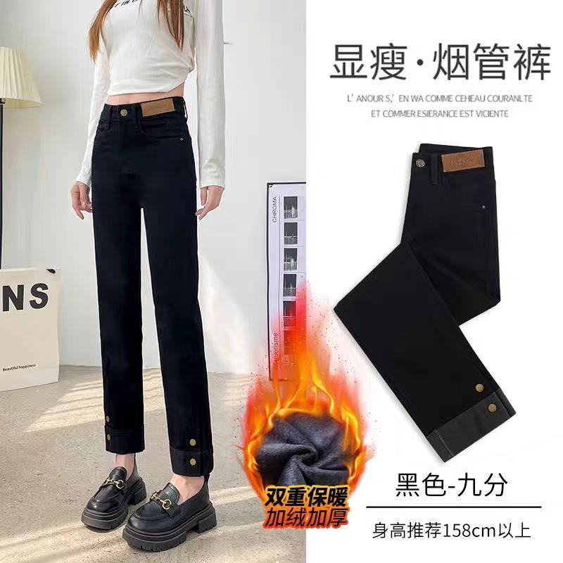 淘YANGLE 经典百搭烟管牛仔裤女2025秋冬新款九分抓绒窄版直筒裤