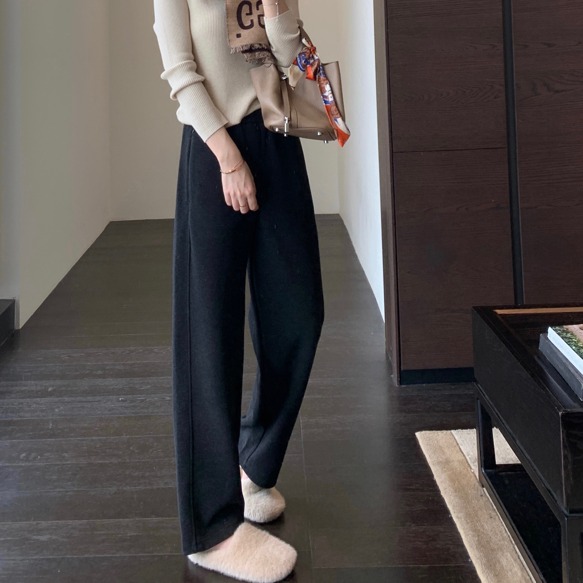 淘宝AMR UU◆重磅醋酸羊毛保暖高腰显瘦毛呢窄版直筒裤阔腿裤女秋冬新