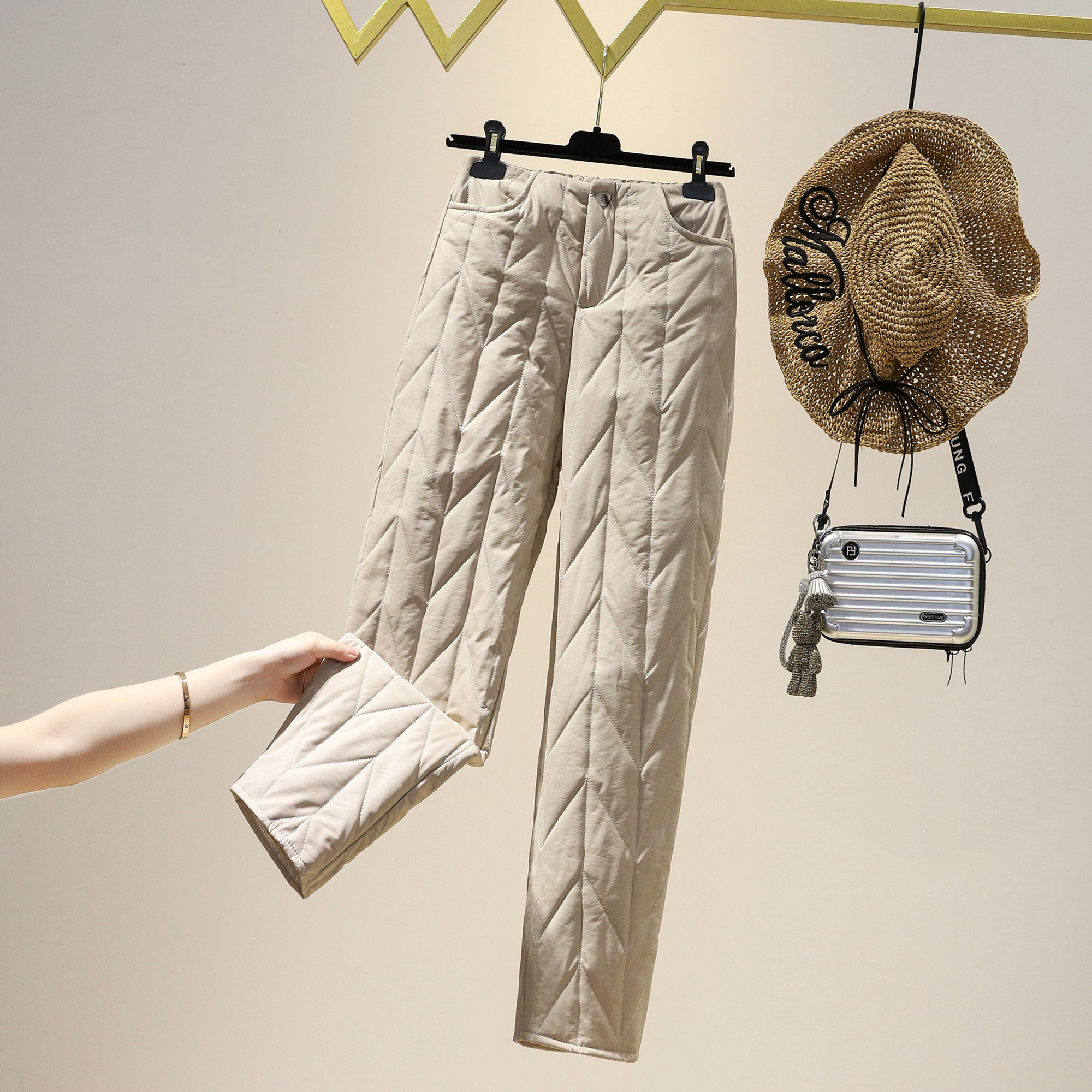 淘宝外贸原单意大利女装余单清仓出口轻薄羽绒棉裤秋冬加厚保暖直筒裤