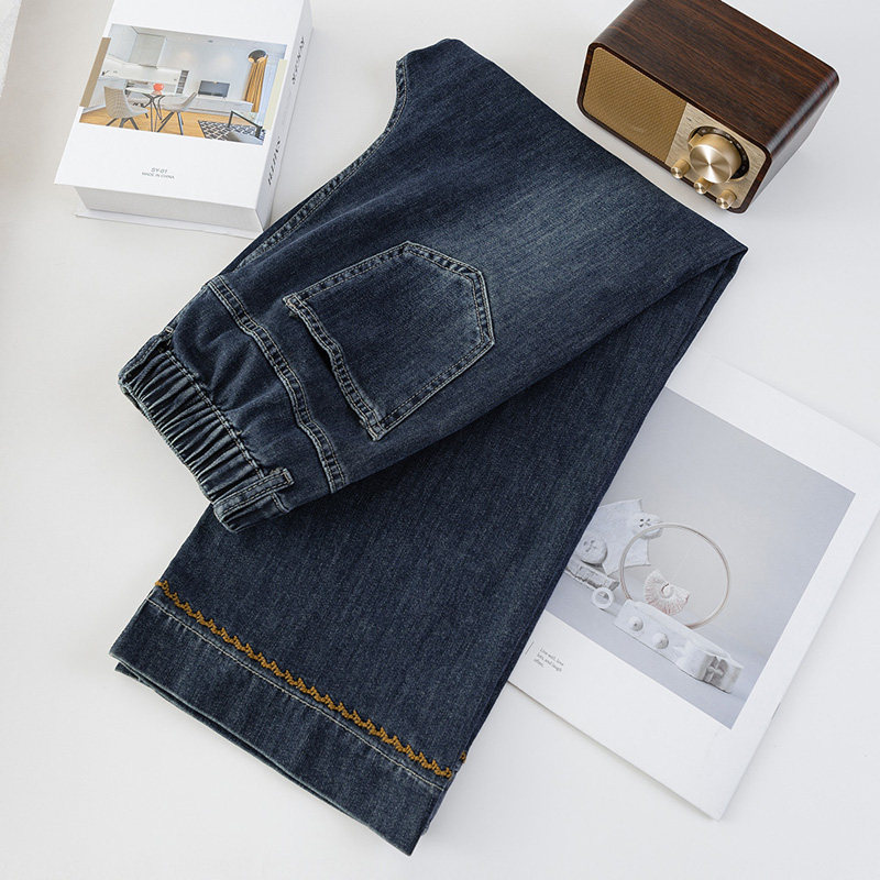 2025年秋季新款直筒窄版大码女牛仔裤,专为微胖女生设计,适合200斤以内身材。采用高腰半松紧腰头,舒适不勒腹,巧妙提升腰线,视觉拉长腿部比例。精选高弹牛仔面料,包裹性强且活动自如,侧边微收剪裁搭配直筒版型,有效修饰腿型,显瘦效果出众。前幅立体压线设计增强线条感,后袋精致提升臀线,兼顾时尚与实用。多色可选,百搭易穿,轻松驾驭通勤、休闲等多种场合,是秋季衣橱不可或缺的显瘦单品。