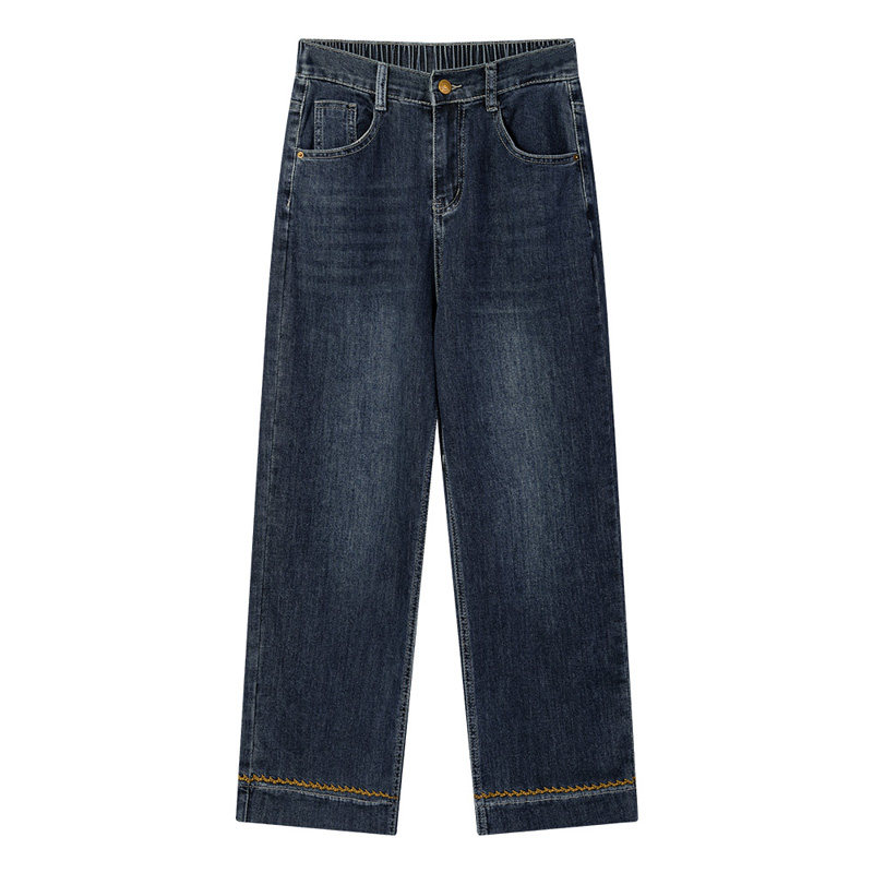 深蓝色直筒牛仔裤女秋冬加绒大码胖mm宽松垂感显瘦梨形身材阔腿裤