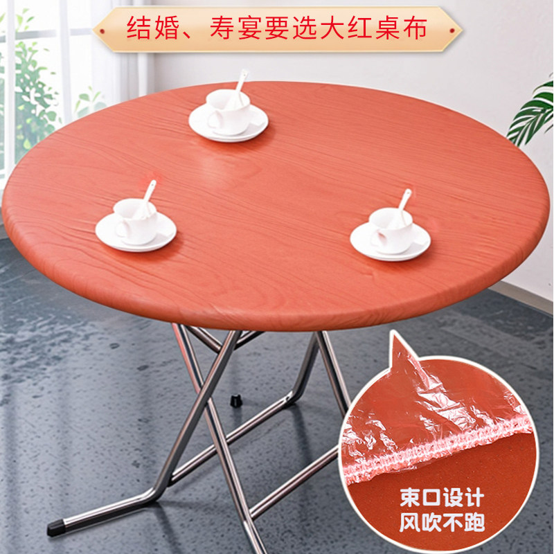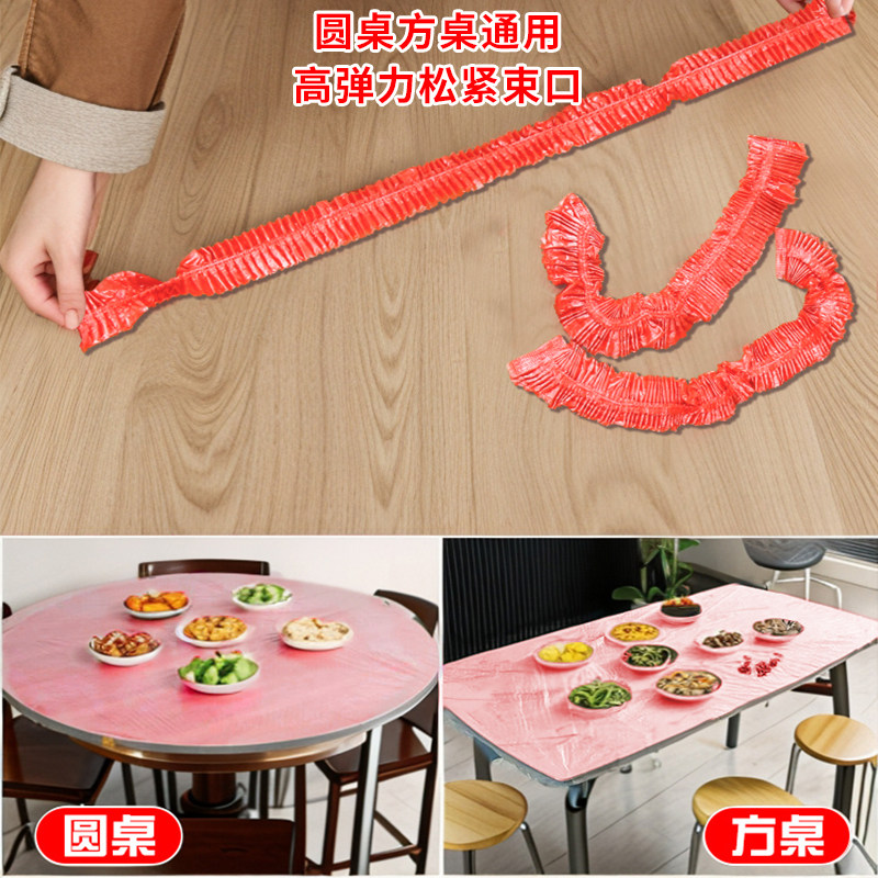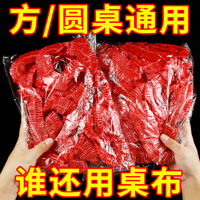 淘一次性桌布束口松紧带圆桌子红色塑料布薄膜结婚酒席寿宴乔迁火锅
