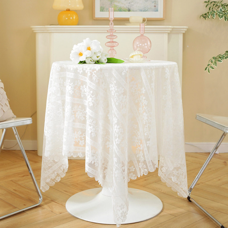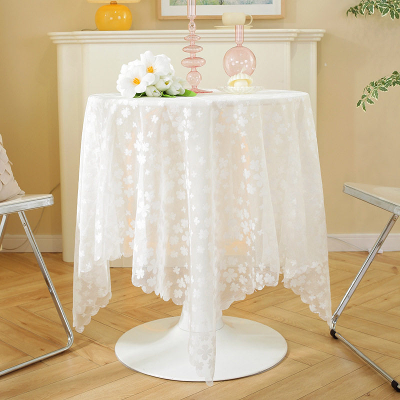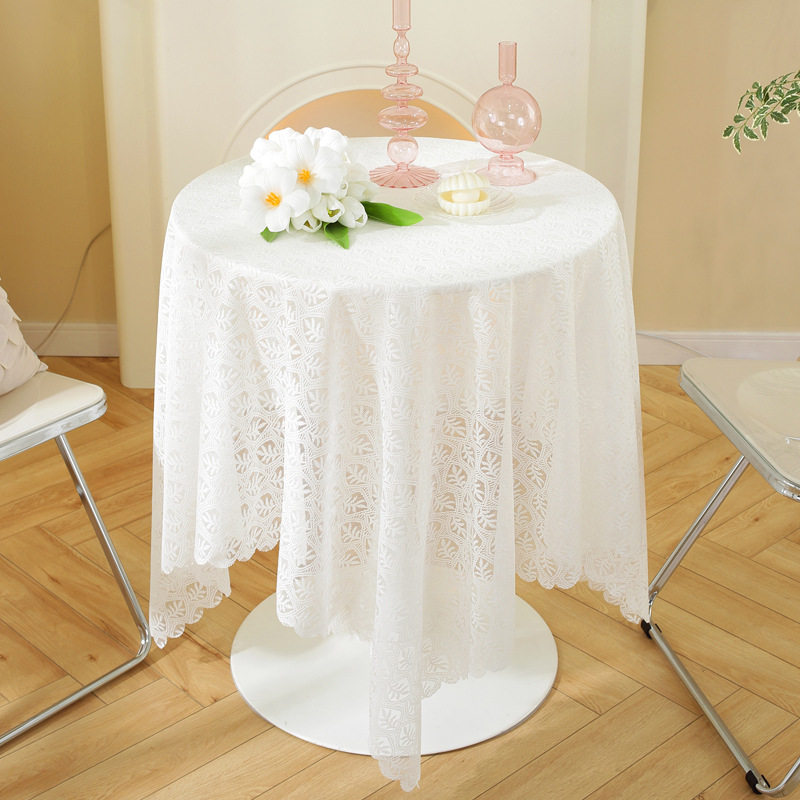 淘宝法式白色蕾丝桌布高级感北欧台布圆桌盖布长方形绣花纱盖巾茶几