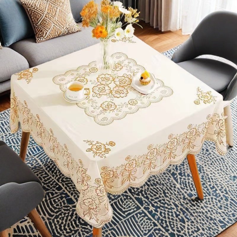 淘宝欧式家用pvc塑料正方形桌布蕾丝烫金防水防烫免洗八仙桌台布盖布
