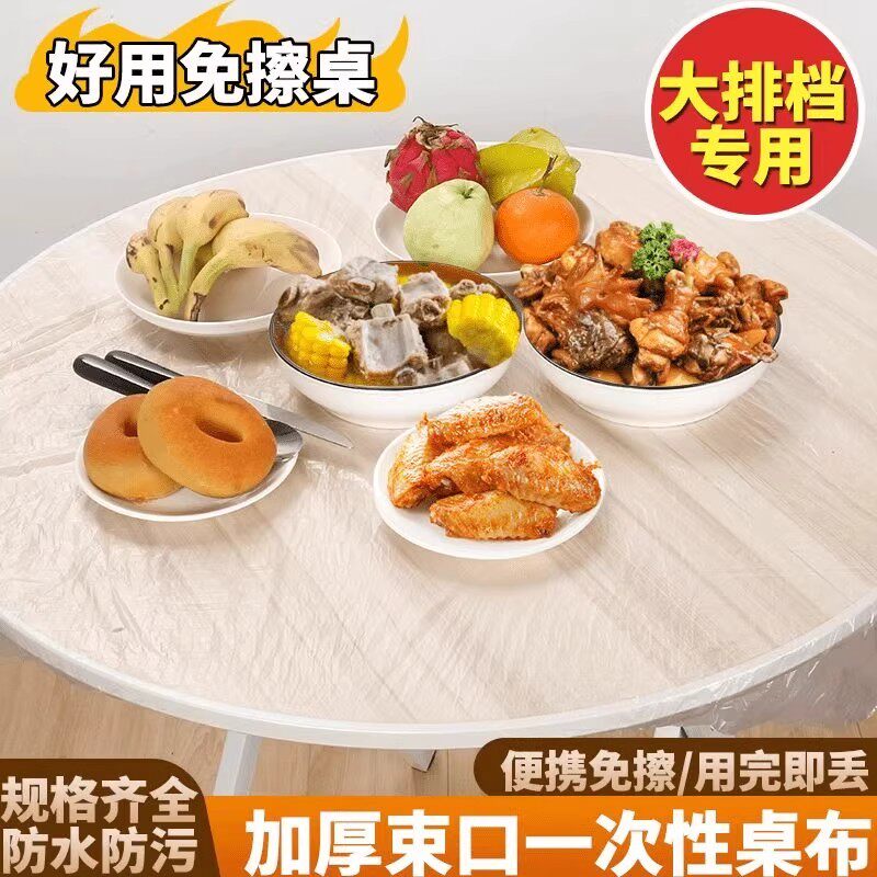 淘束口一次性桌布家用加厚松紧带桌布一次性免洗透明圆形长方形专用