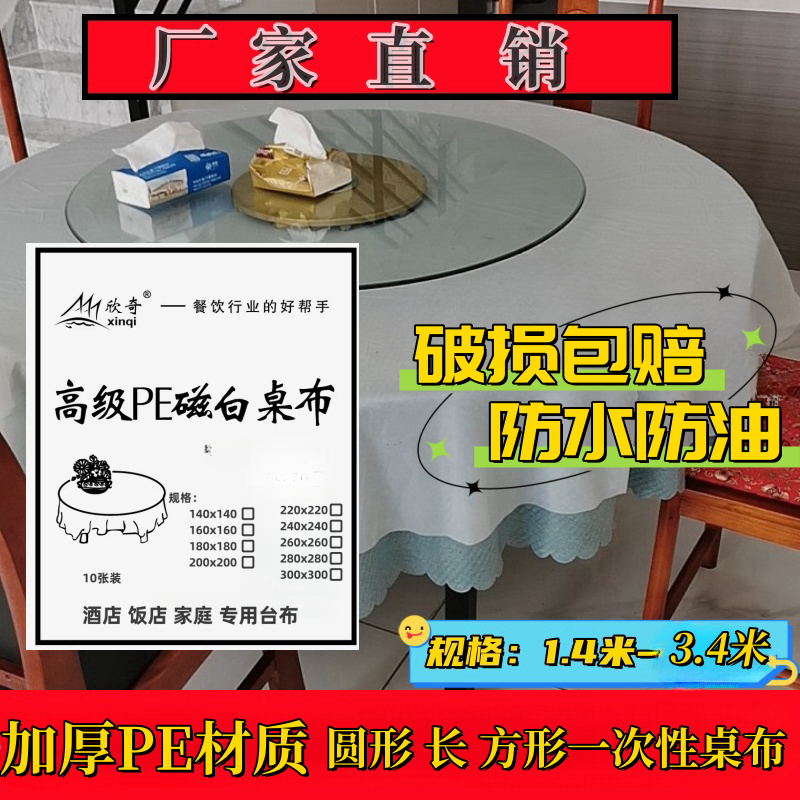 淘宝加厚PE圆形一次性餐桌布长方形酒店餐厅商用家庭结婚防水防油台布