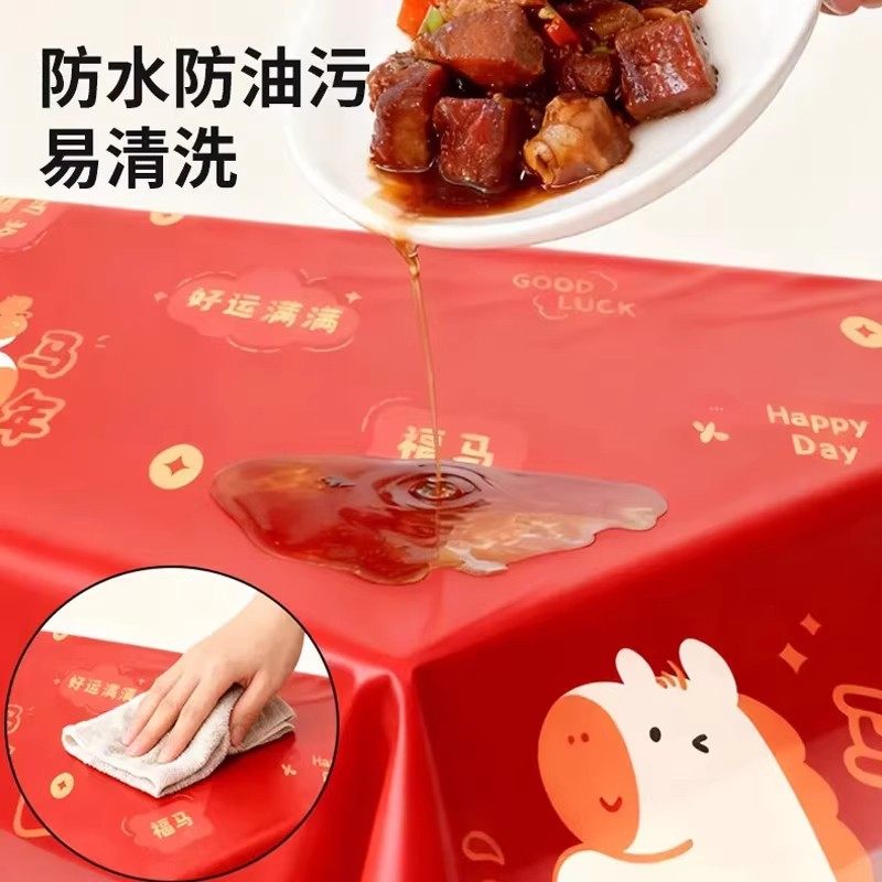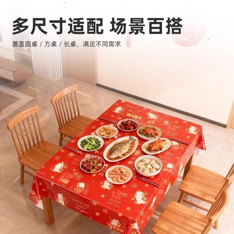 淘宝马年红色桌布一次性加厚喜庆台布方桌圆桌通用防水防油免洗餐桌布