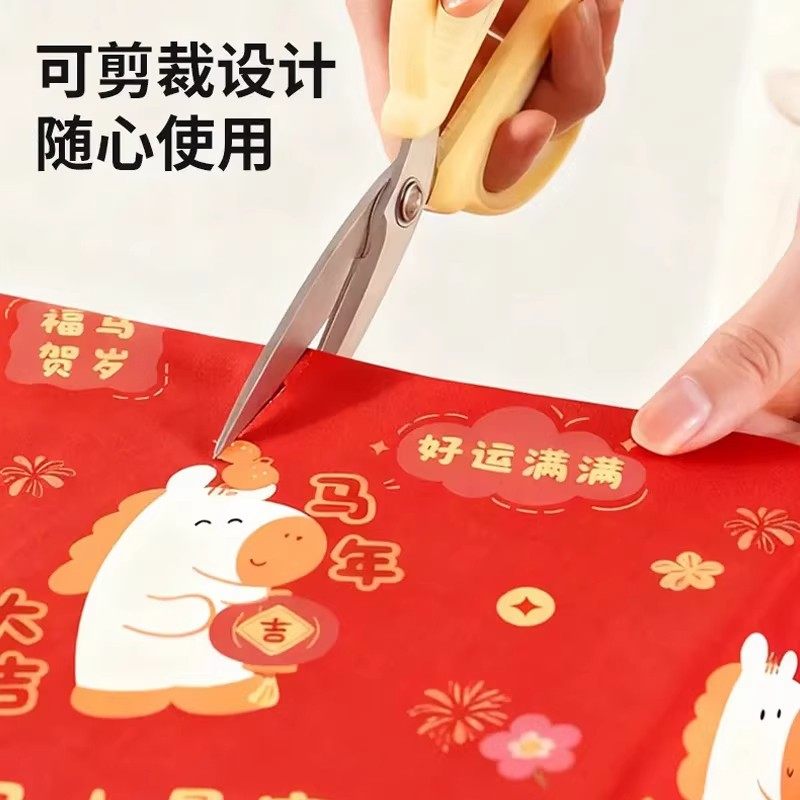 这款马年红色桌布专为节庆聚餐设计,采用一次性加厚材质,结实耐用,适用于方桌、圆桌等多种桌面。大红色调寓意吉祥喜庆,特别适合春节、婚宴、寿宴等场合,营造浓厚节日氛围。表面经过防水防油处理,汤汁油渍不易渗透,清洁更省心,使用后直接丢弃,免洗便捷,节省时间与精力。环保材质安全无味,使用安心。无论是家庭聚餐还是户外宴请,都能轻松应对,让餐桌布置既美观又实用,是节日聚会的理想选择。
