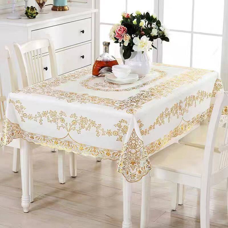 淘宝烫金PVC餐桌防水防尘防烫大尺寸桌布140x200餐桌桌布