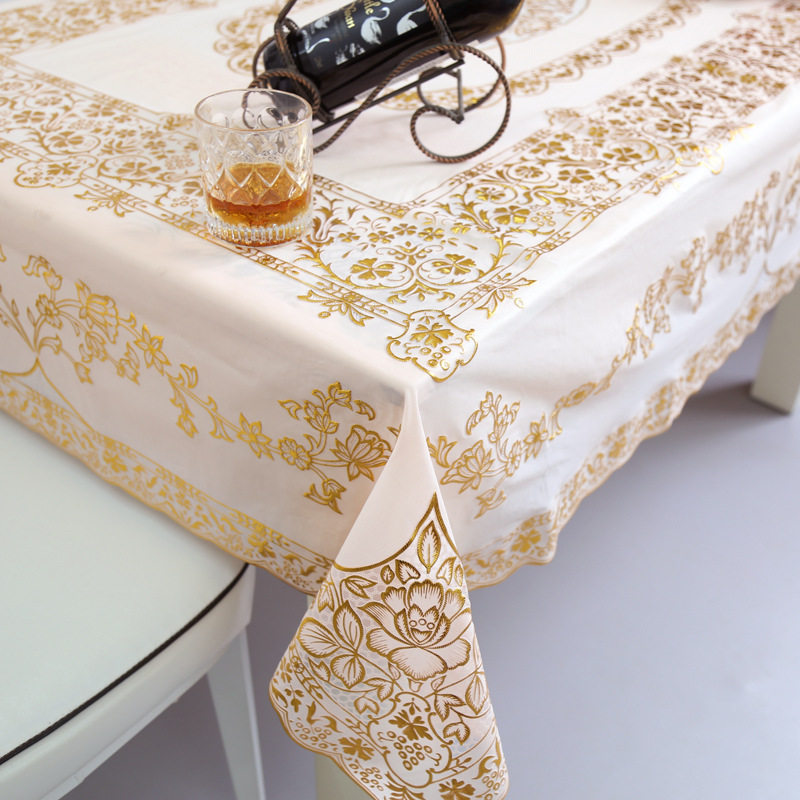 PVC烫金防水防烫免洗桌布长方形欧式桌布茶几垫台布圆形桌布方形