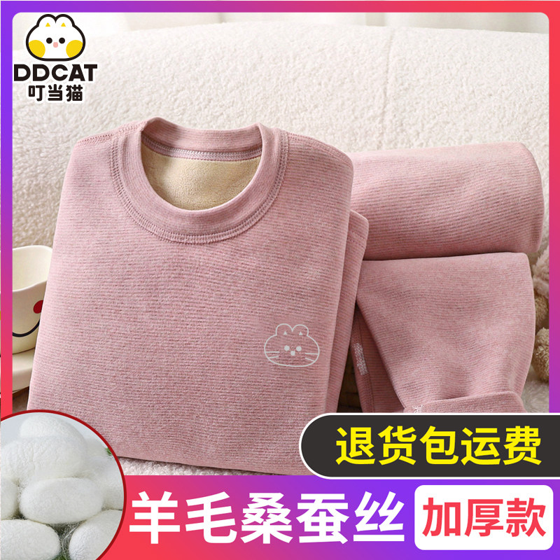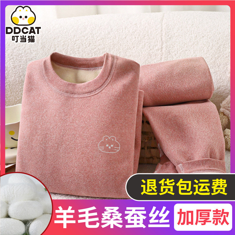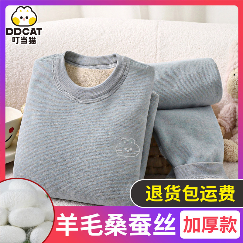 天猫德绒中大童男女宝宝秋衣秋裤套装保暖内衣套装打底衫睡衣秋冬季
