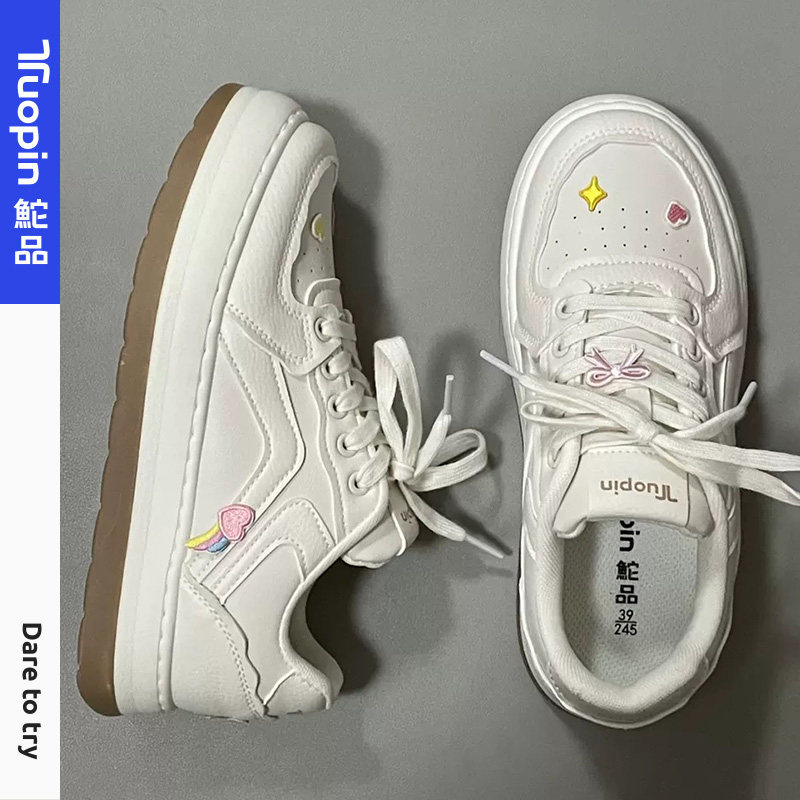 鮀品厚底小白鞋女款2026春季新款,融合时尚与舒适,打造百搭休闲新风尚。采用优质透气面料,轻盈贴合脚型,久穿不闷脚。经典纯白配色,简约大方,轻松搭配裙装、裤装或运动风造型。加厚隐形内增高设计,悄然拉长腿部线条,提升气质又不失自然。橡胶防滑大底,耐磨缓震,行走稳健舒适。无论是日常通勤、逛街还是短途出行,都能展现青春活力。鮀品以匠心工艺与潮流美学,为现代女性提供兼具颜值与实穿性的理想鞋履选择,是2026春季不可或缺的时尚单品。