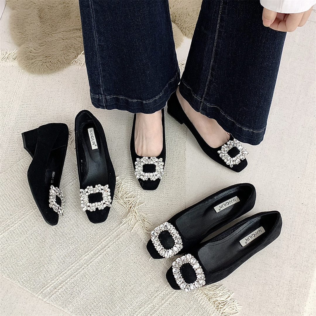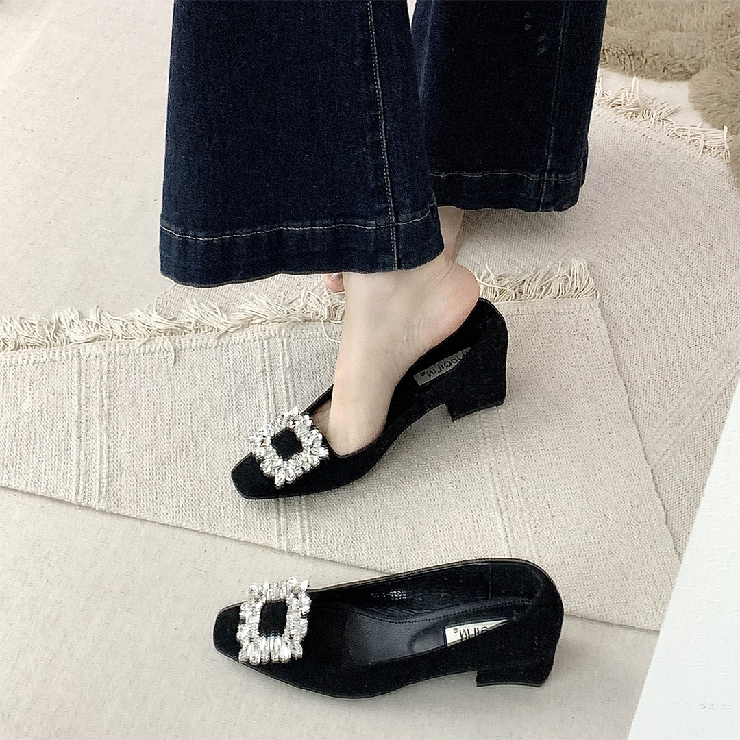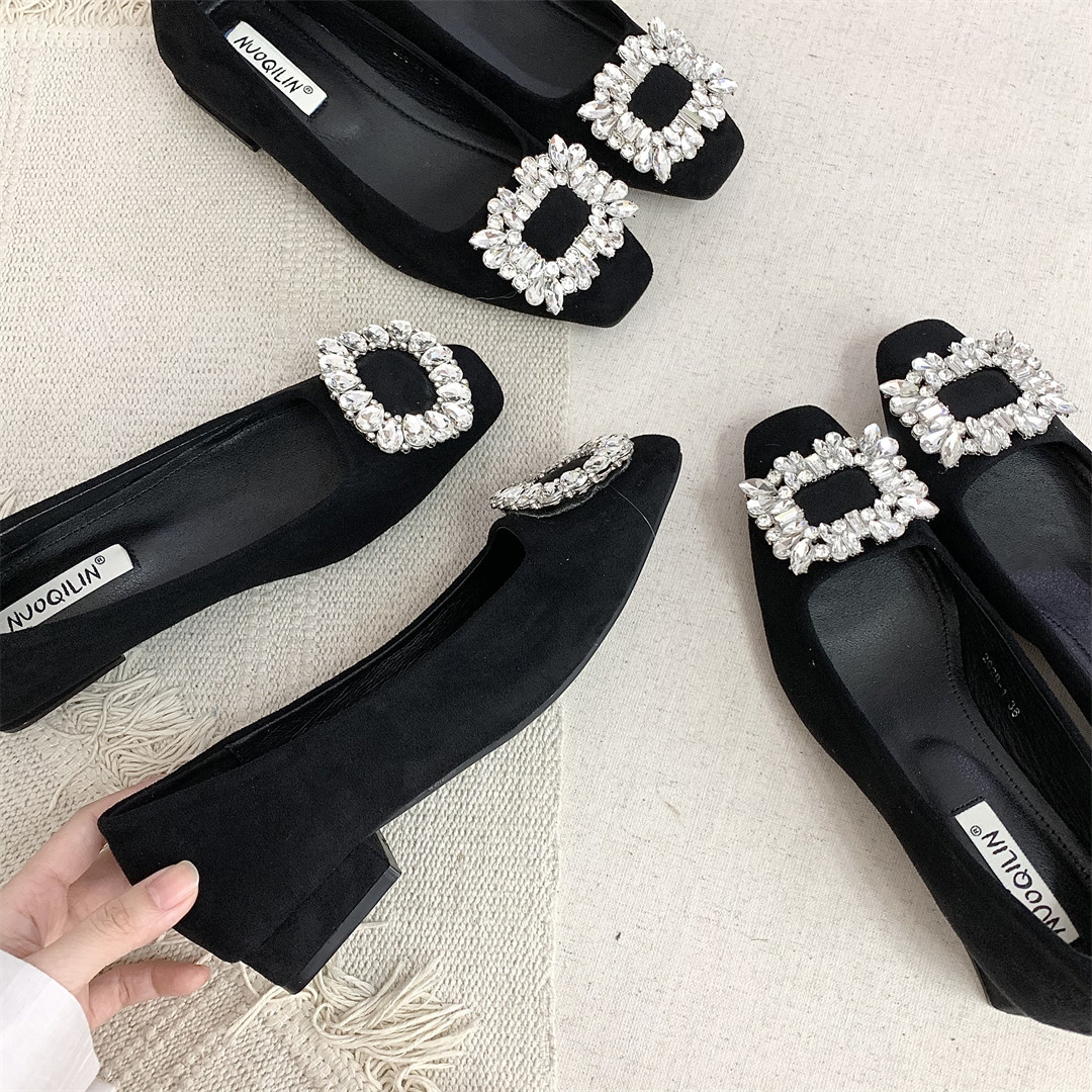 淘宝韩版气质水钻单鞋粗跟高跟鞋女款鞋秋冬款晚晚鞋法式女鞋黑色鞋子