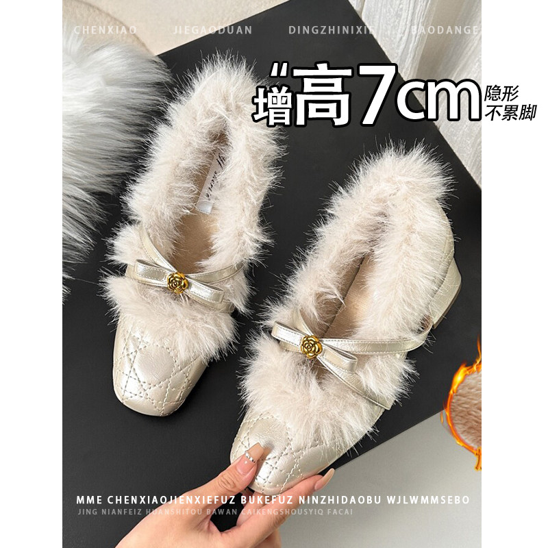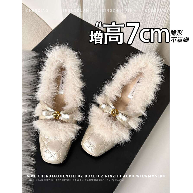 淘宝隐形内增高7CM!小个子蝴蝶结玛丽珍单鞋2026春新款套脚高跟鞋女