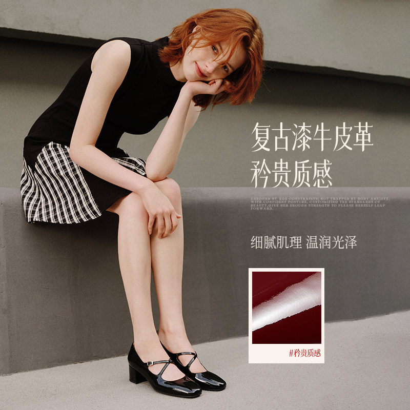 天猫百丽女鞋珍妮女孩复古玛丽珍鞋高跟单鞋