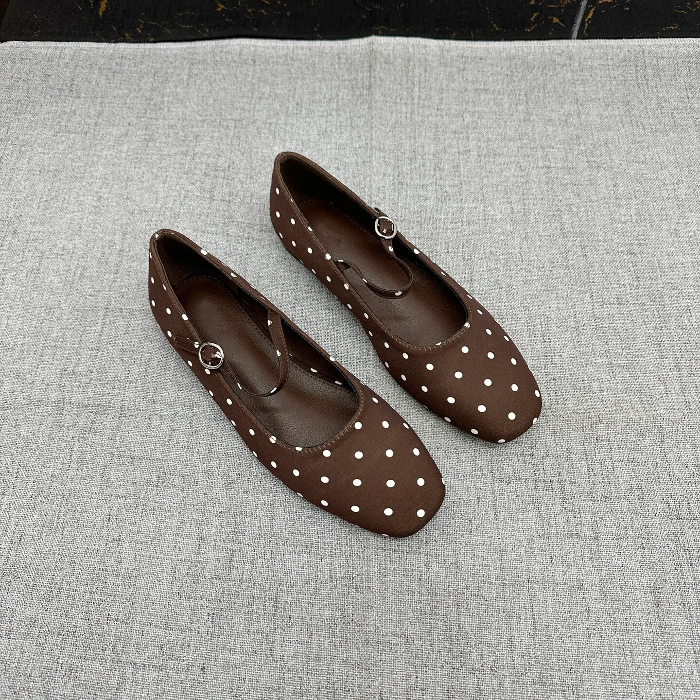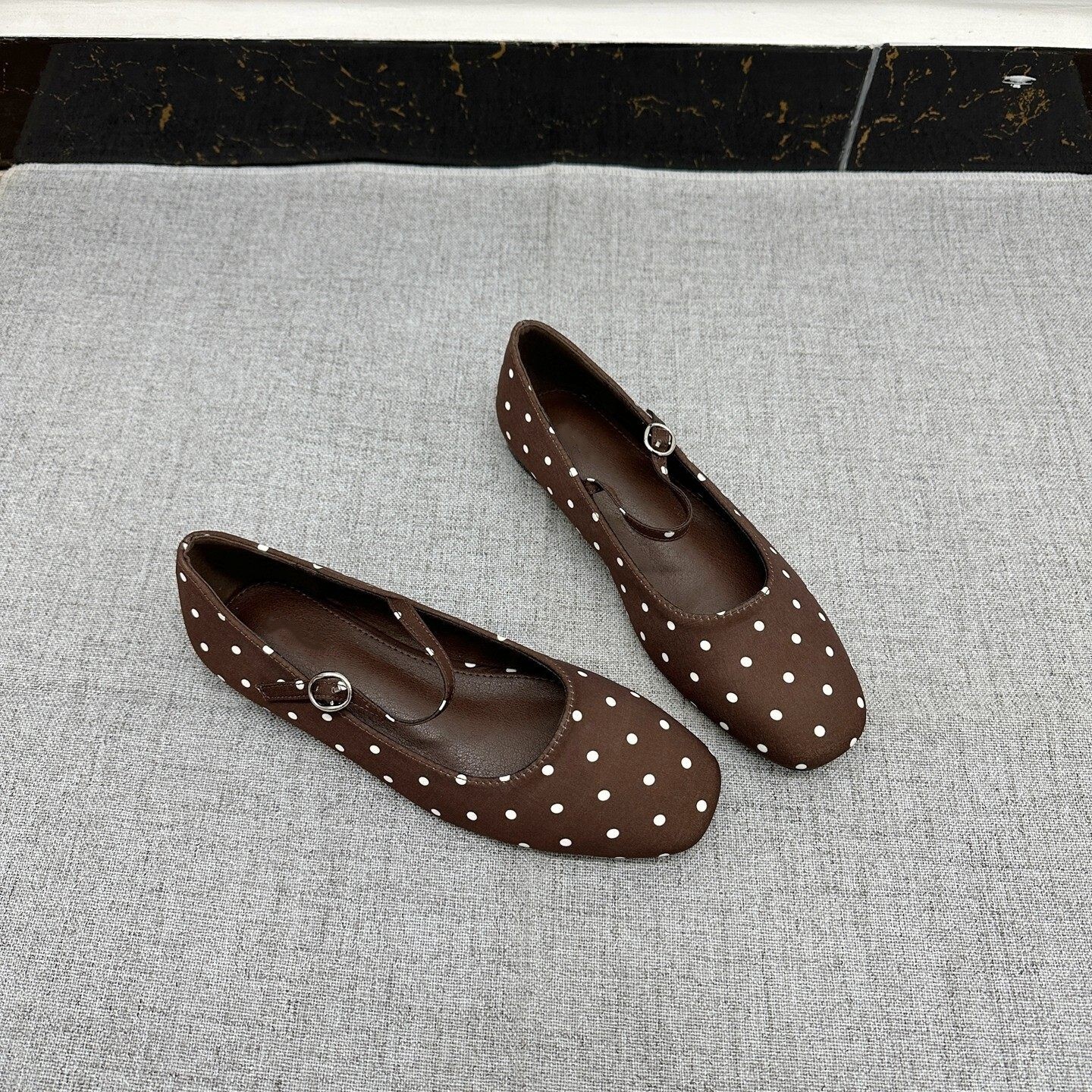 淘宝出口外贸 波点平底玛丽珍女鞋大码方头简约百搭一字扣浅口单鞋