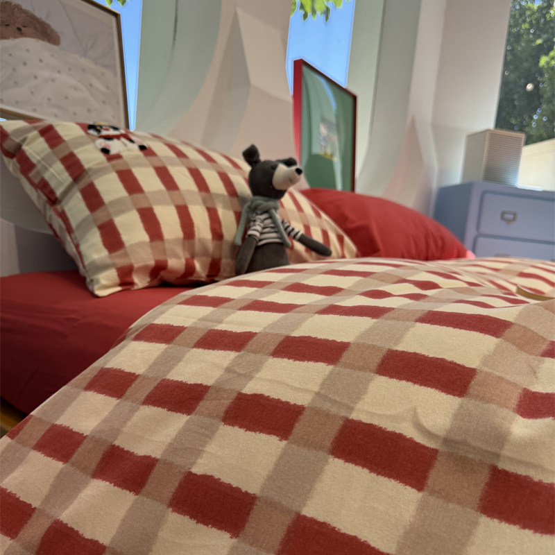 这款卡通毛巾绣猫咪红条纹磨毛四件套,采用100%全棉材质,柔软亲肤,透气吸湿,适合秋冬使用。被套、床单与枕套均融入精致毛巾绣工艺,立体猫咪图案俏皮可爱,搭配经典红条纹设计,增添温馨童趣氛围。磨毛工艺使面料更加厚实细腻,带来加绒般的保暖体验,特别适合寒冷季节。适用于1.5米床型,尺寸标准,包裹性强。整体设计兼顾美观与实用,既提升卧室颜值,又带来舒适温暖的睡眠感受,是追求品质与颜值兼具家庭的理想选择。