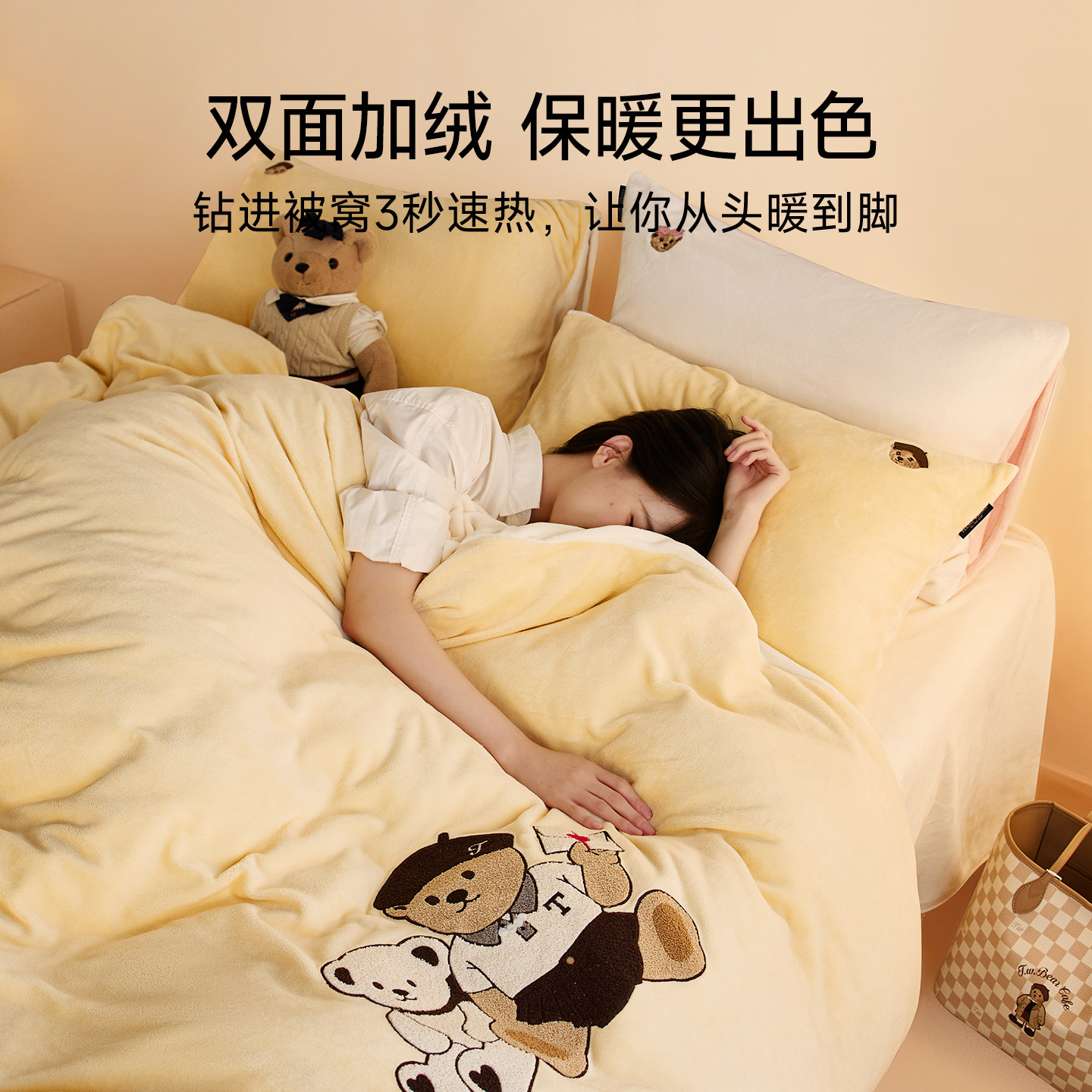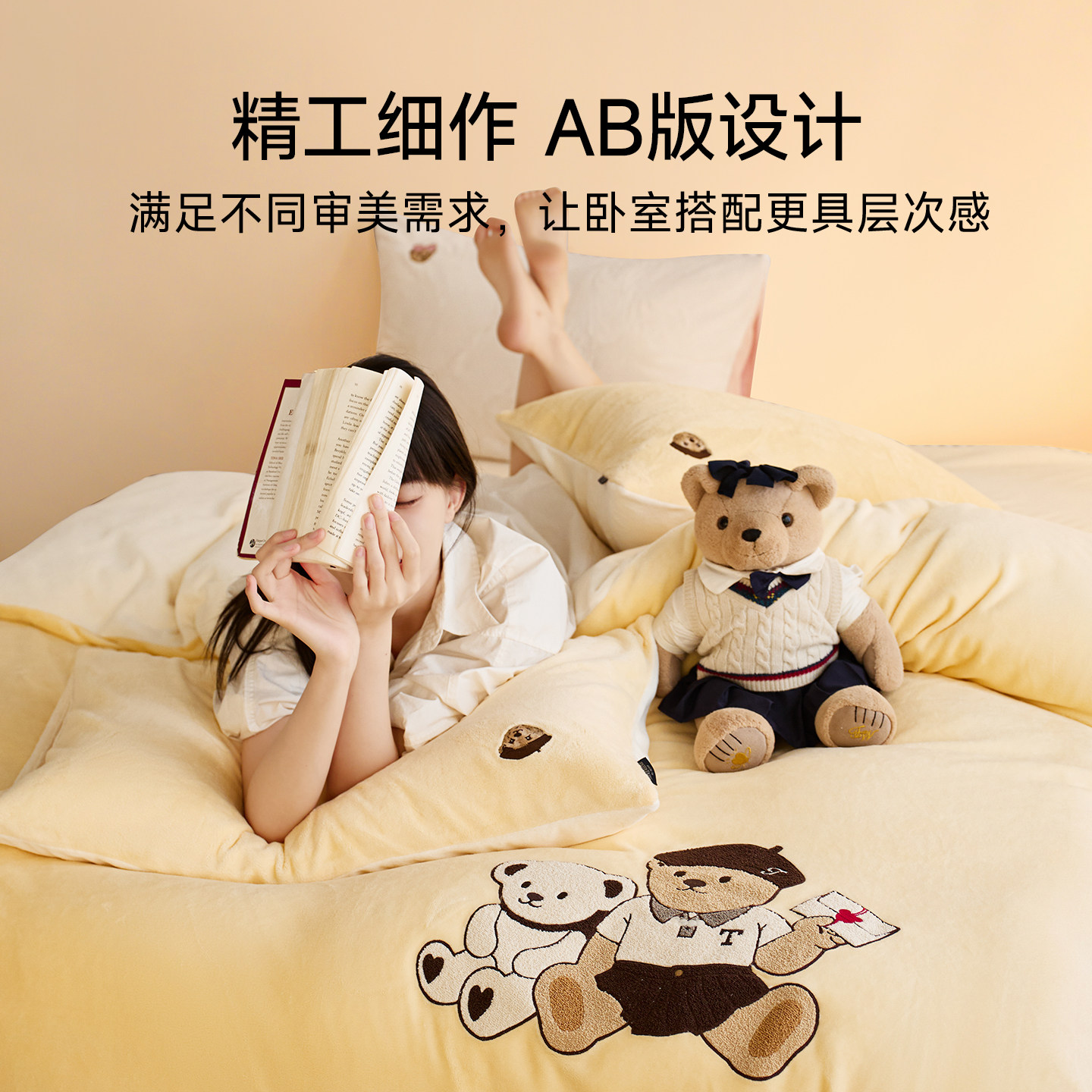 天猫TeenieWeenie奶黄小熊暖绒毛巾绣四件套牛奶绒2026新款加绒套件