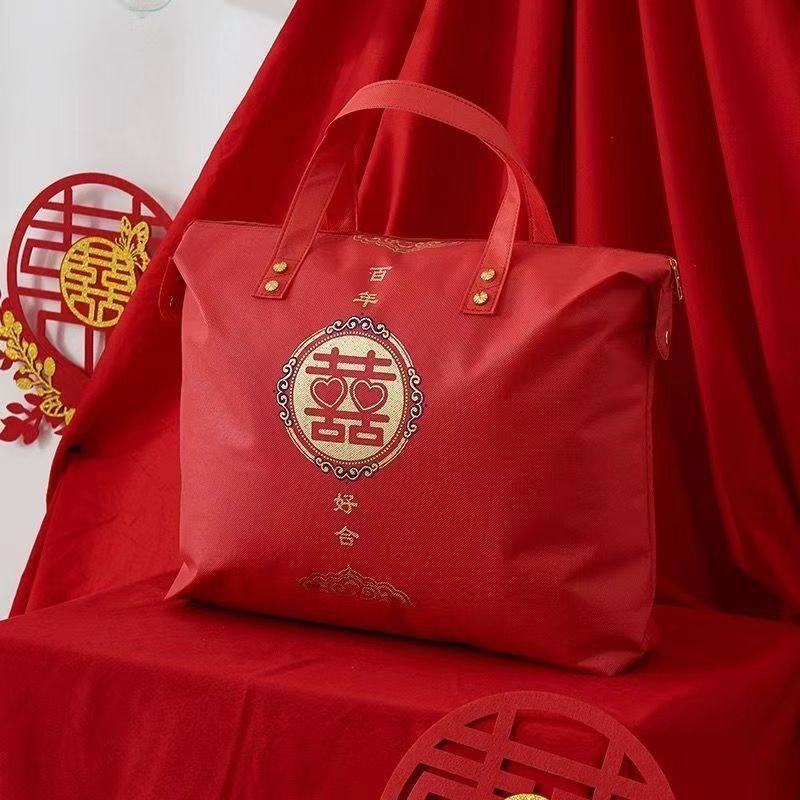 这款婚庆被子包装袋专为婚礼及日常收纳设计,采用加厚耐磨面料,有效防尘、防潮、防污,延长被褥使用寿命。袋身印有喜庆吉祥图案,寓意美好婚姻,适合装四件套、棉被、毛毯等大件床品。大容量设计,轻松收纳双人被,搭配牢固手提带,方便搬家、旅行或换季存放。拉链封口严密,密封性强,防尘防潮更安心。无论是婚礼当天收纳喜被,还是日常家居整理,都是实用又美观的理想选择。结实耐用,可重复使用,环保又经济,是新人及家庭必备的收纳好帮手。