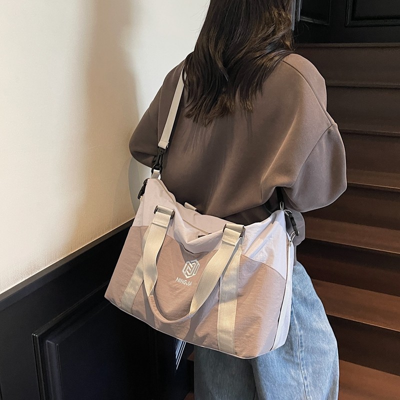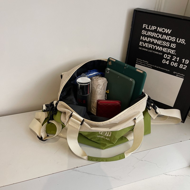 淘Din 字母运动健身包女瑜伽旅行包手提包大学生上课单肩包牛皮大包
