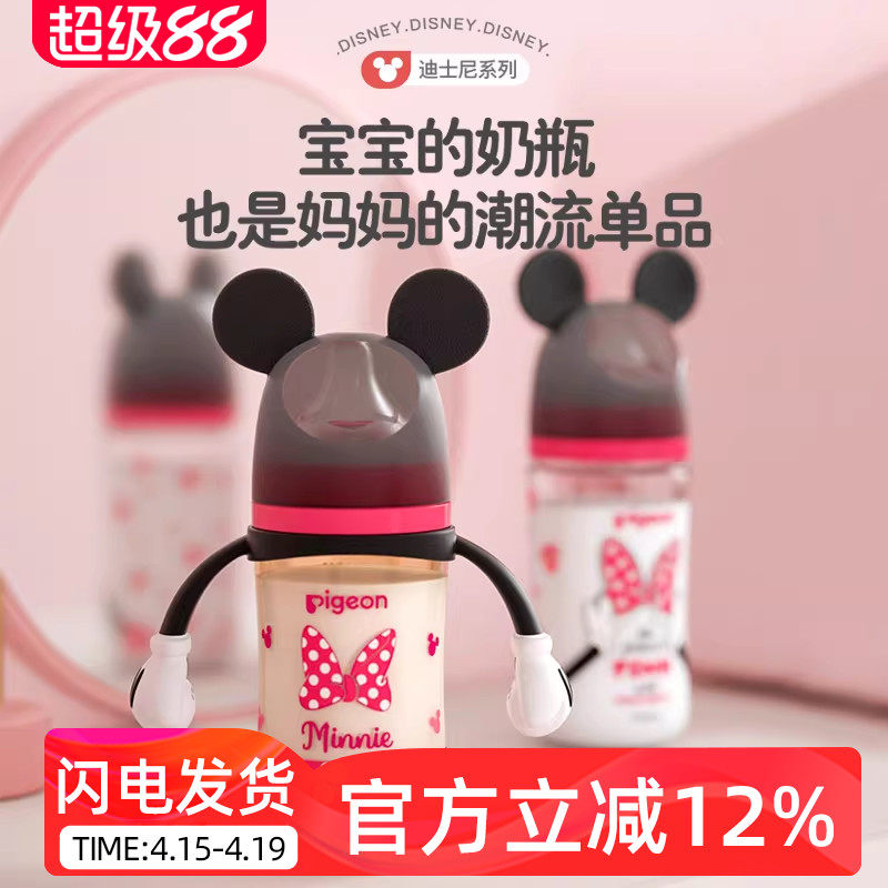 天猫贝亲宽口径PPSU塑料奶瓶迪士尼三代自然实感新生婴儿奶瓶1岁以上