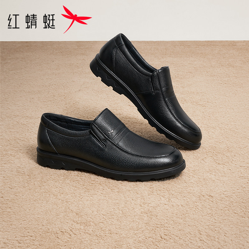 天猫红蜻蜓男士皮鞋爸爸冬季真皮休闲男鞋大码软底轻便舒适中老年鞋子