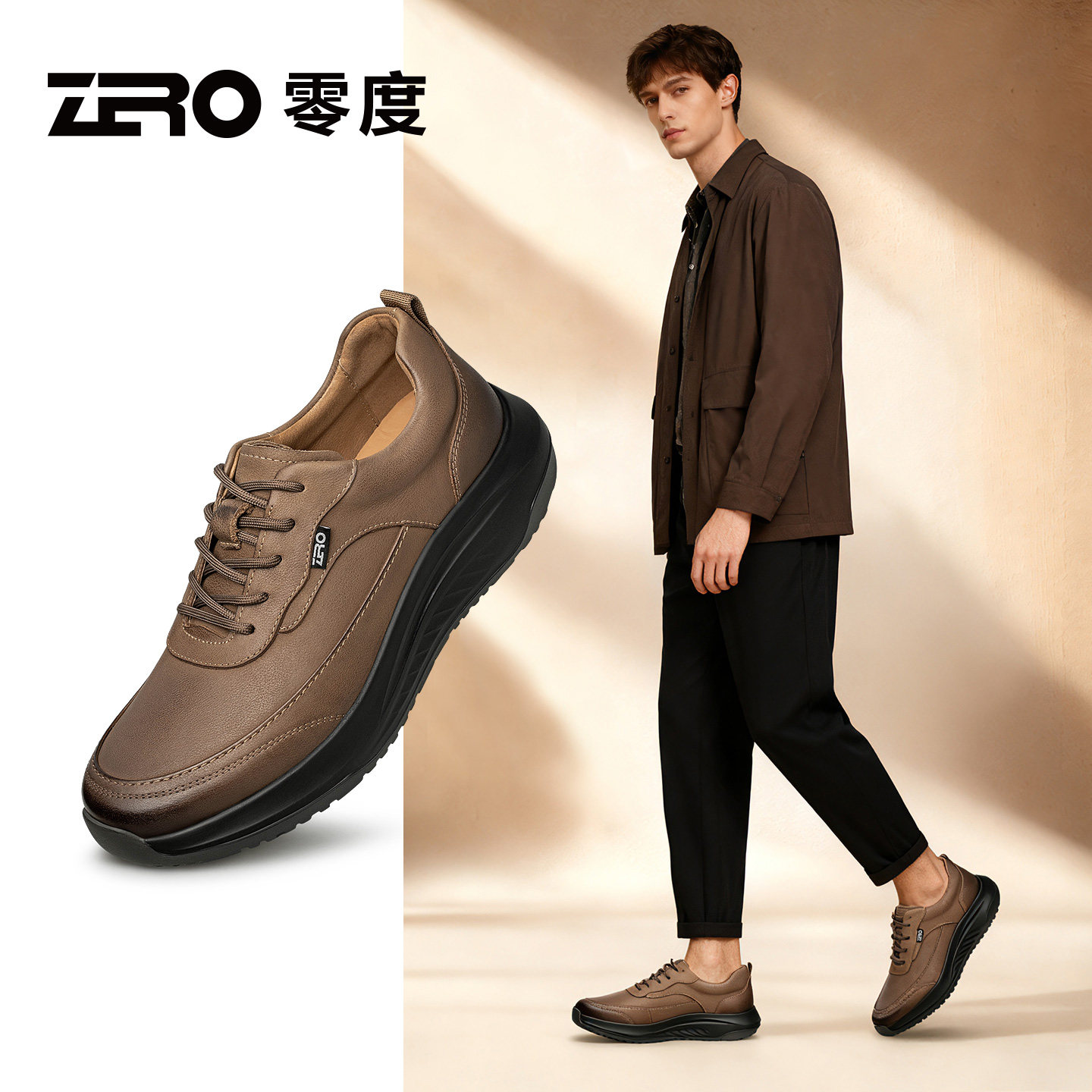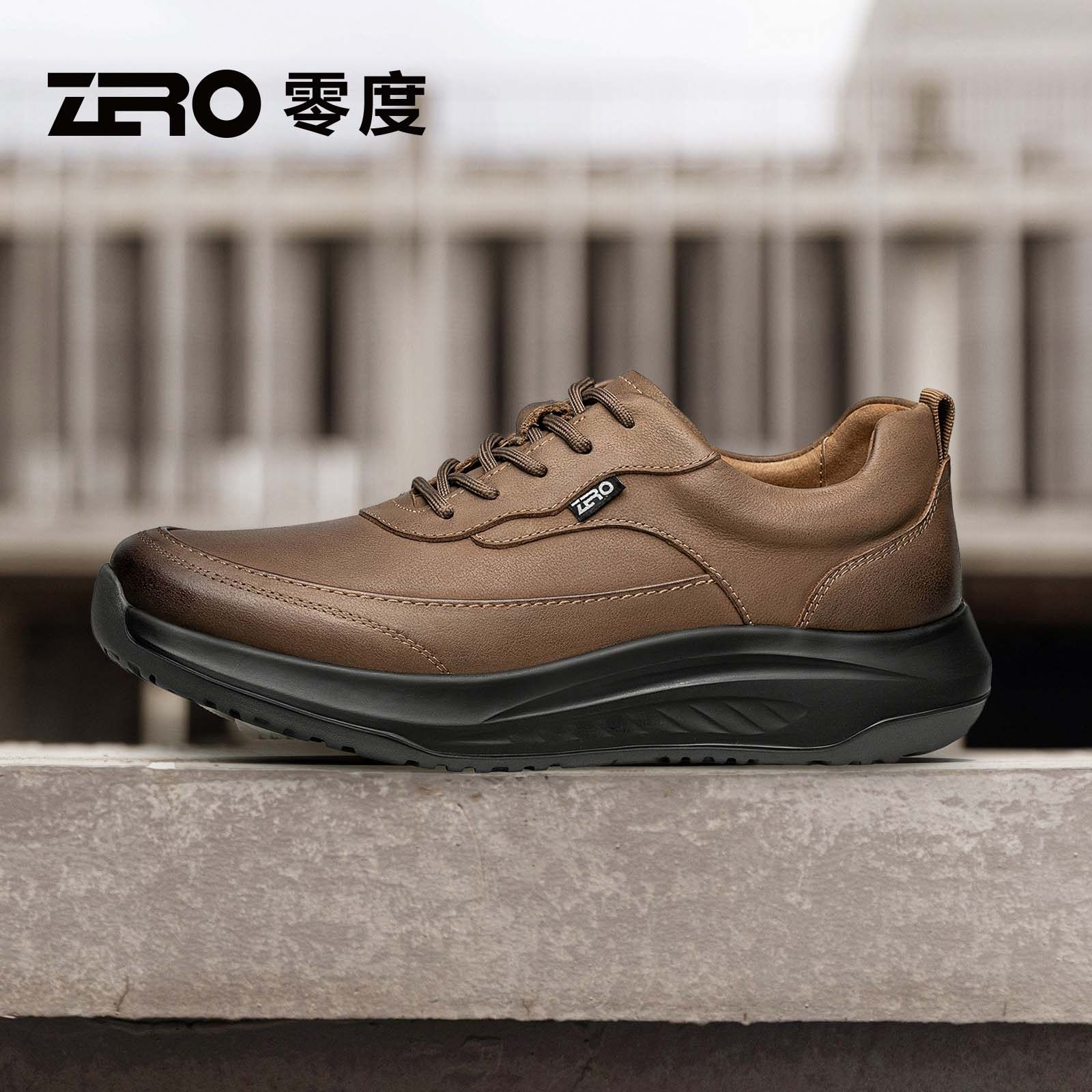 天猫[舒适缓震防滑]ZRO零度休闲皮鞋25冬季新款加绒保暖棕色休闲男鞋