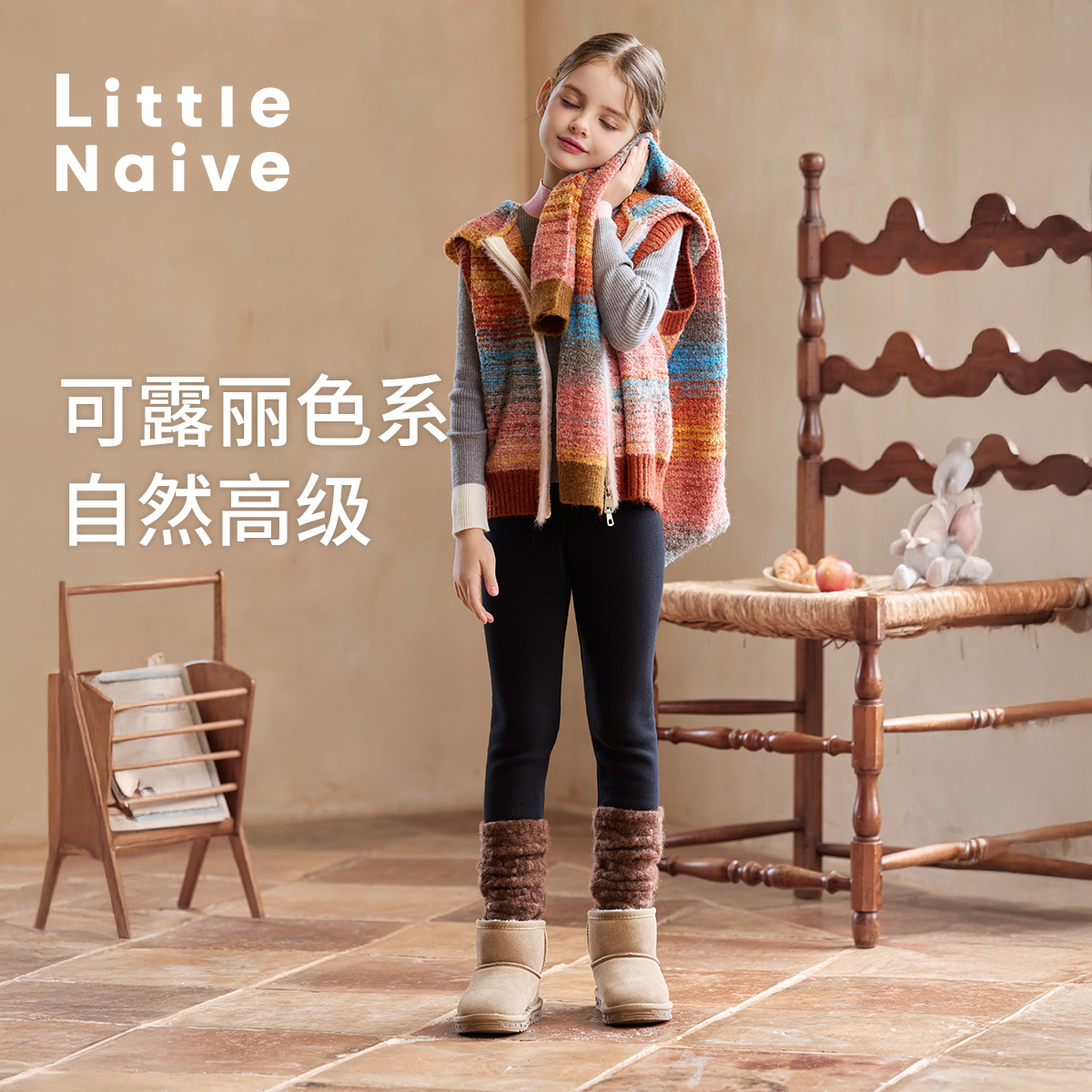 天猫Little Naive儿童一体绒打底裤秋冬加绒保暖女童裙子内搭裤子时髦