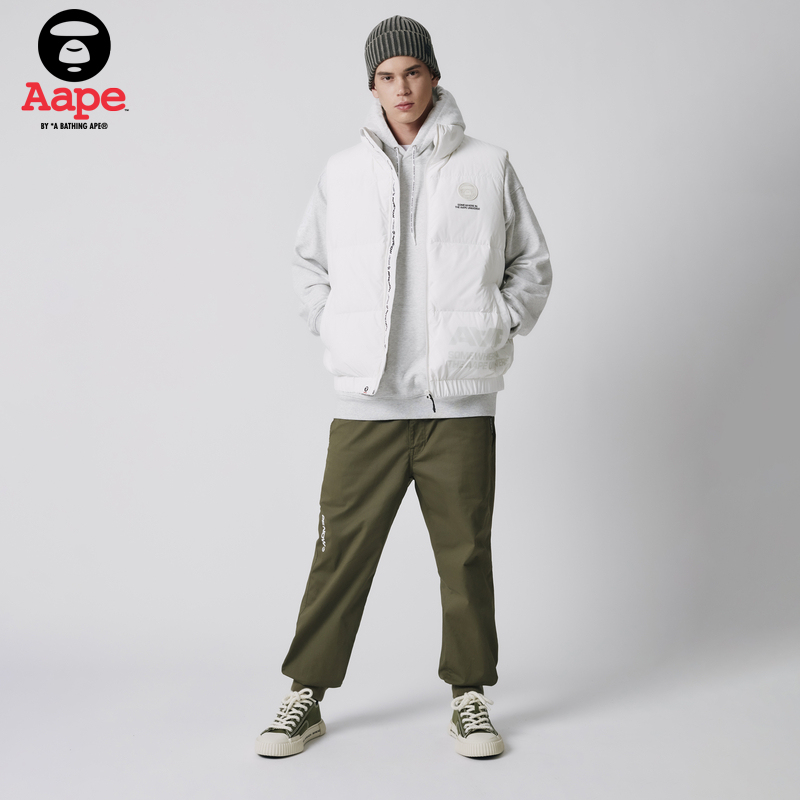 天猫Aape旗舰店男装秋冬猿人徽章字母印花羽绒马甲背心7593XXL