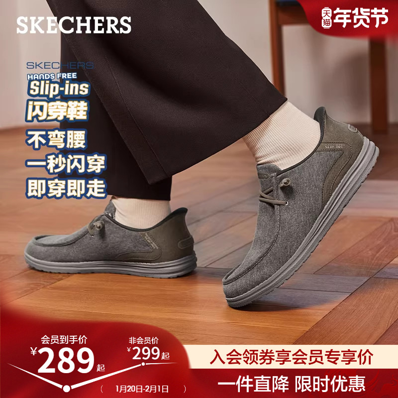 天猫Skechers斯凯奇闪穿鞋男一脚蹬休闲板鞋春季新款帆布乐福鞋
