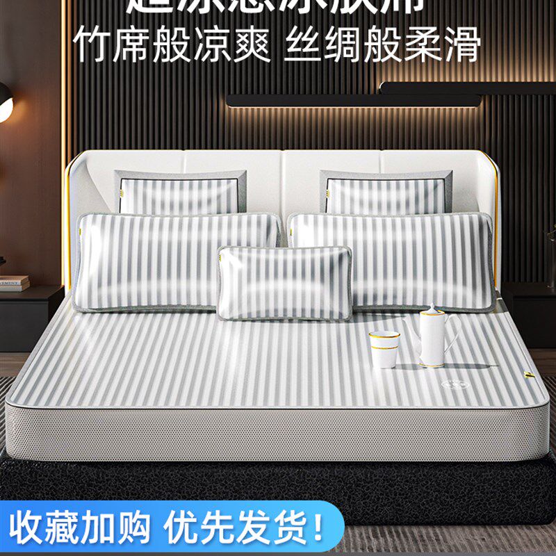 天水星家纺600D高端冰丝凉席二/三件套冰藤席夏季家用软席床品