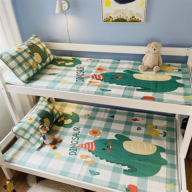 淘宝可爱小恐龙绿色高低床上下床1米1.35学生0.9夏季儿童乳胶凉席订做