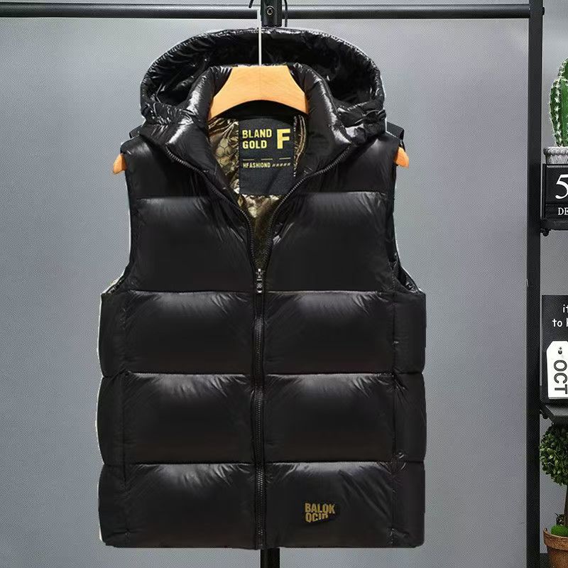鸭鸭羽绒马甲秋冬中年加厚脱卸帽白鸭绒保暖背心时尚坎肩男式外套