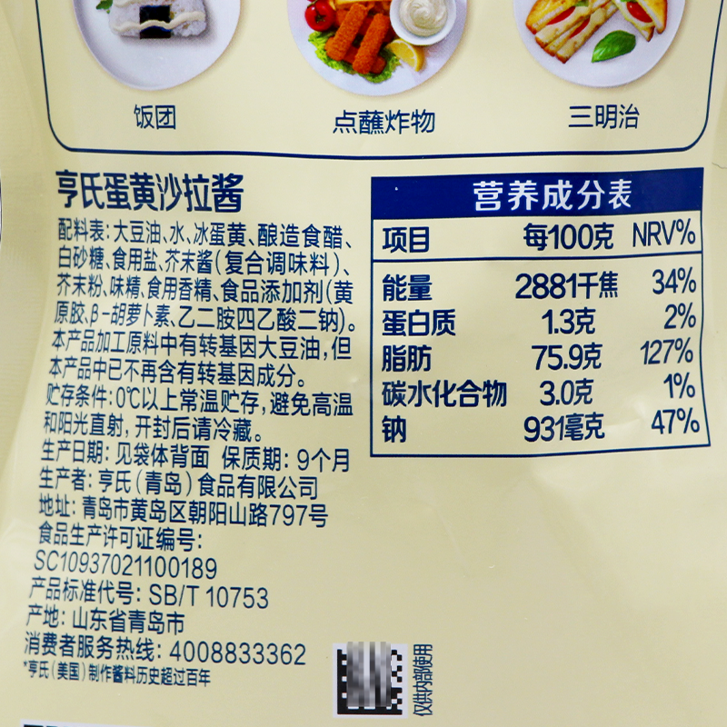 淘宝亨氏蛋黄沙拉酱200g三明治热狗汉堡寿司手抓饼面包早餐手抓饼蘸酱