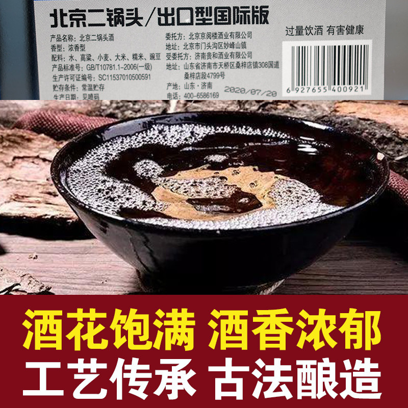 正品老北京二锅头,传承百年酿酒工艺,精选优质高粱、小麦等纯粮原料,经传统地缸发酵、清蒸清烧酿制而成。本品分为42度与52度两种度数,口感醇厚、清香纯正、回味甘甜,尤以52度高度酒烈而不燥,层次丰富。出口型方瓶蓝瓶设计,典雅大方,兼具东方韵味与国际审美,是馈赠亲友、宴请宾客的佳品。严格遵循国家食品安全标准,品质可靠,远销海外,广受赞誉。无论是佐餐小酌,还是收藏品鉴,老北京二锅头都展现地道京味酒文化,是美食与美酒的完美融合,彰显纯粮酿造的匠心品质。
