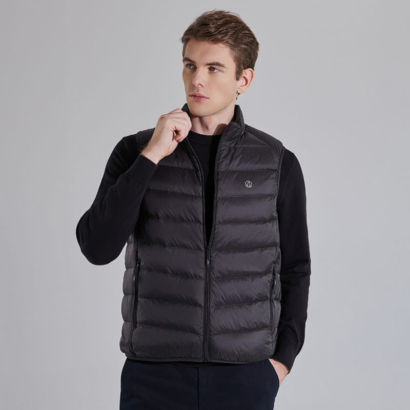 85白鸭绒 轻便蓬松 男士保暖立领羽绒马甲 防风防水无袖外套k