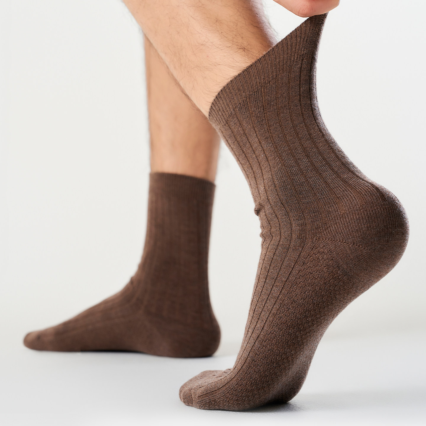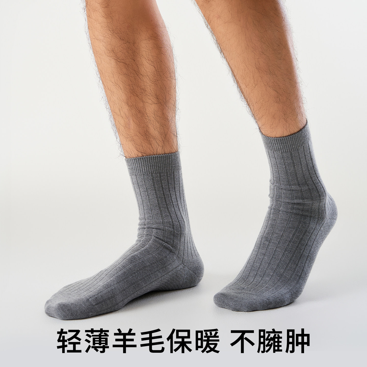 天猫派米桑蚕丝羊毛袜子男款秋冬中筒袜加厚保暖男士抗菌商务纯色男袜