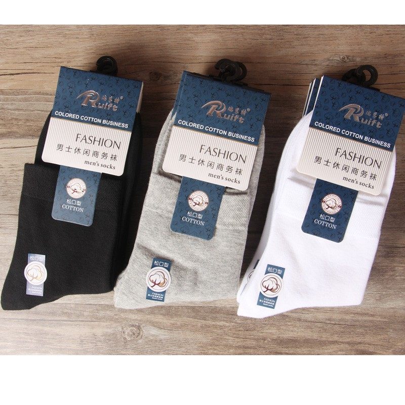 淘宝男士商务中筒棉袜秋冬季松口高腰男袜棉质纯色加厚不臭吸汗男袜子
