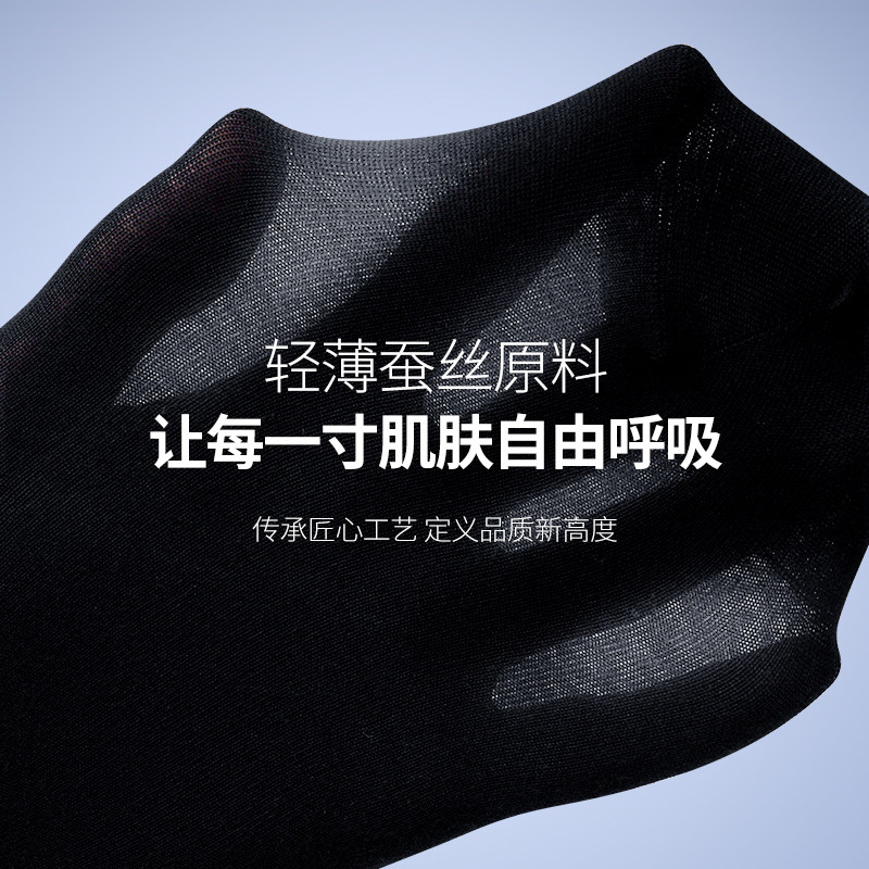 天猫皮尔卡丹男袜子桑蚕丝春夏薄款短筒商务袜黑色中筒袜防臭蚕丝男袜