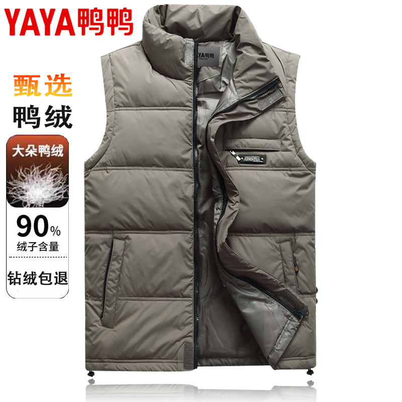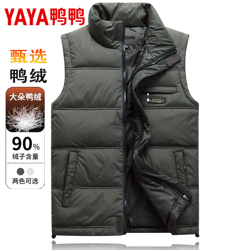 淘宝鸭鸭秋冬立领男士羽绒马甲中老年保暖坎肩鸭绒背心宽松大码外套