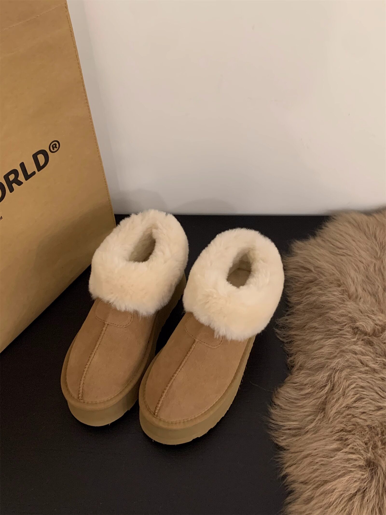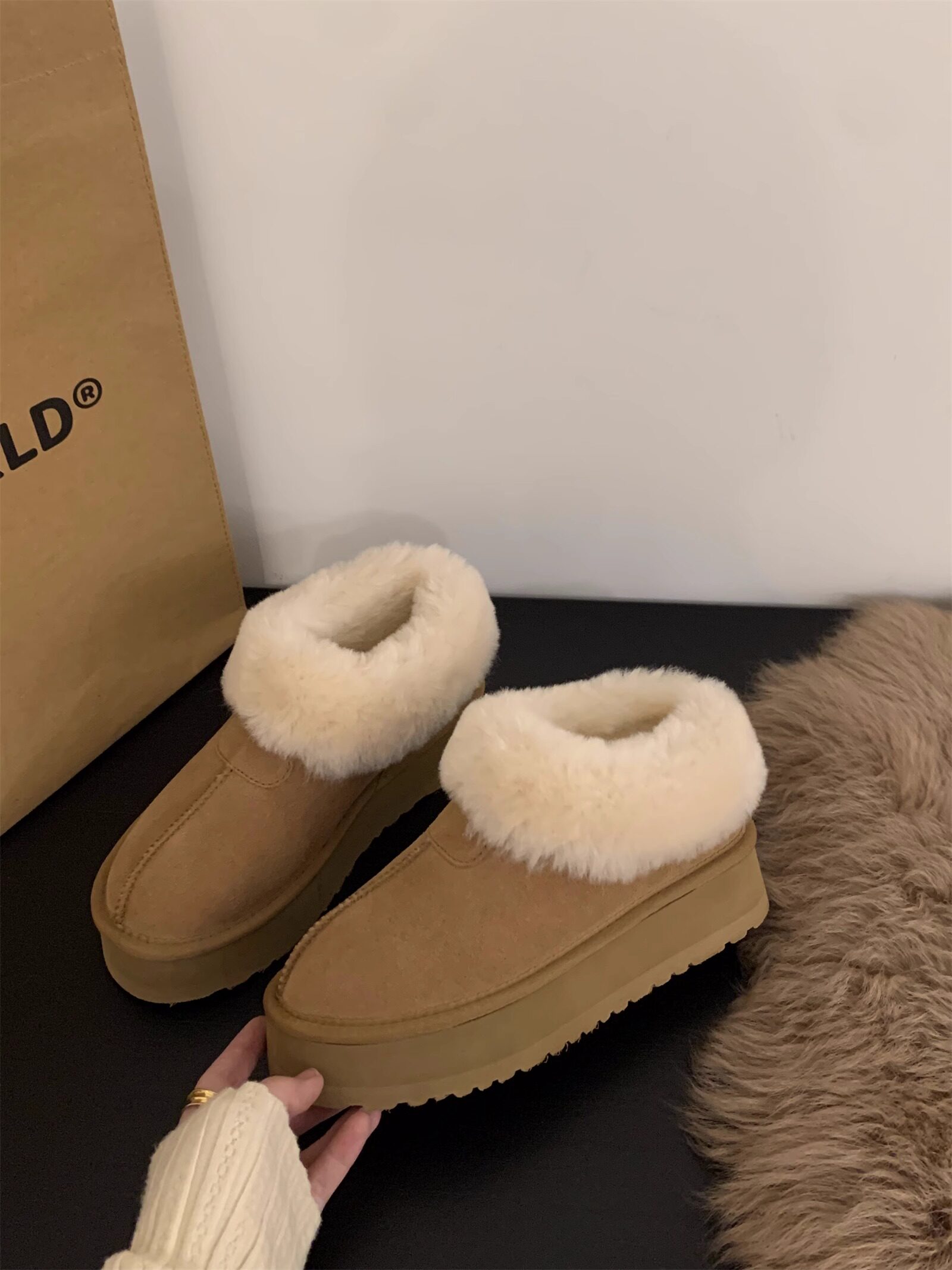 淘米霏~内增高毛呢勃肯鞋女冬加绒保暖毛毛半拖外穿灰色厚底雪地靴