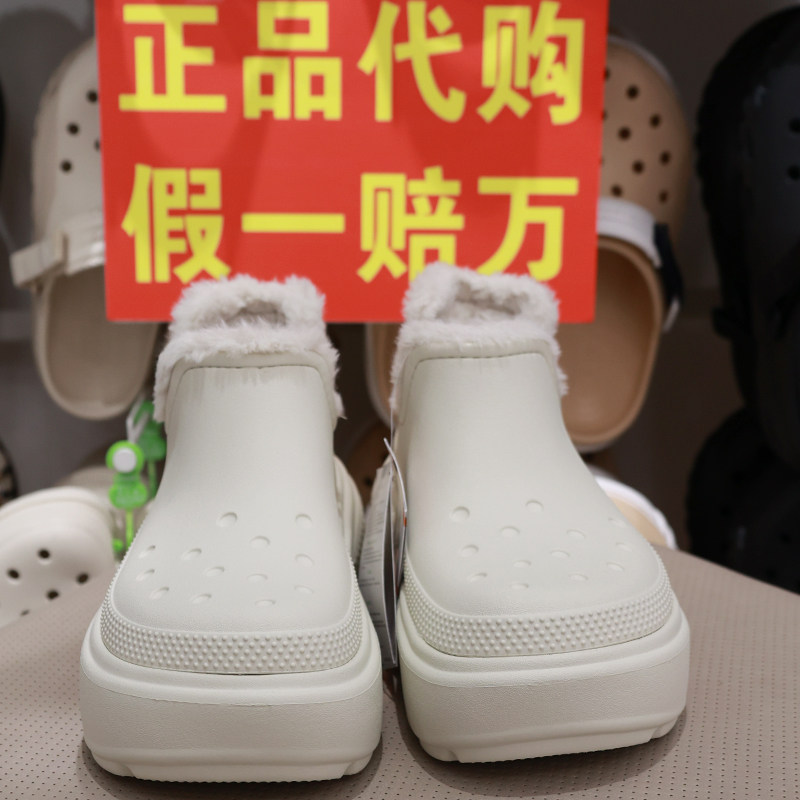 淘宝crocs洞洞鞋卡洛驰冬季雪屋女厚底短靴毛毛加绒保暖雪地靴210673