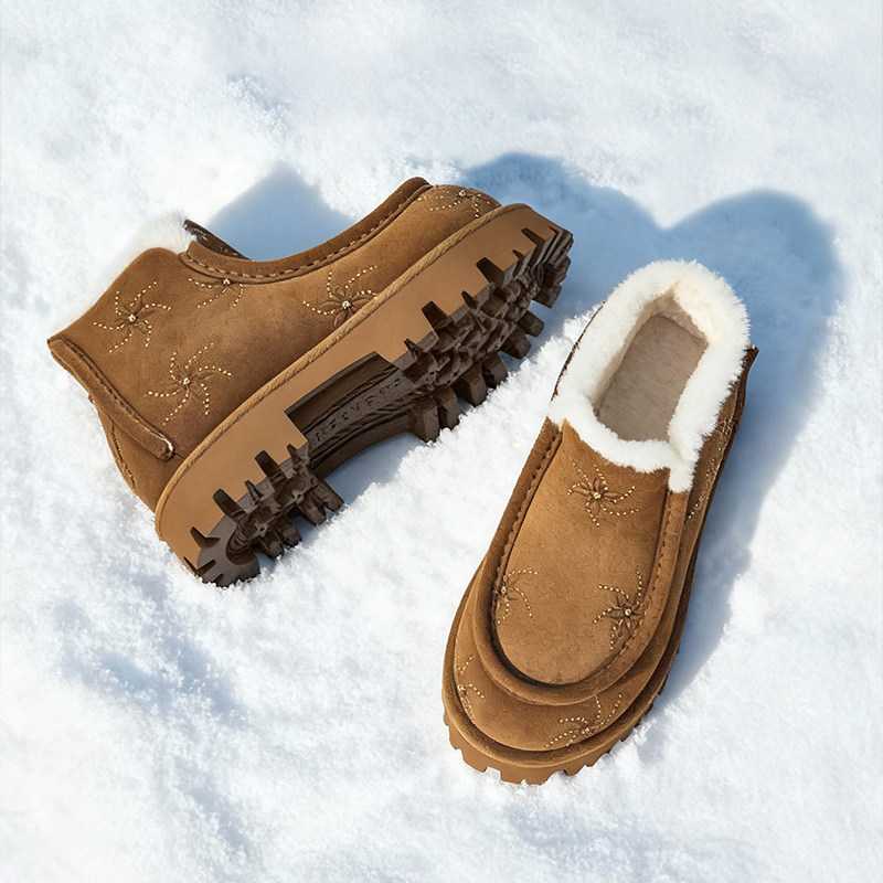 大东雪地靴女鞋2025冬季新款可爱毛绒博肯鞋圆头棉鞋D0721