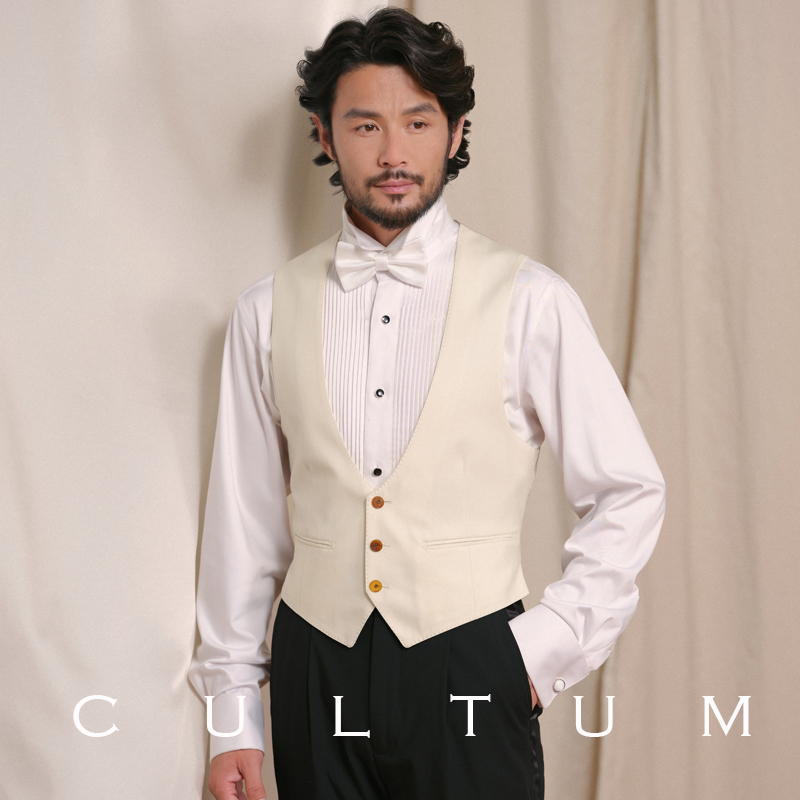 淘CULTUM秋季意式单排扣V领西装马甲男修身侧开衩免烫西服马夹上衣