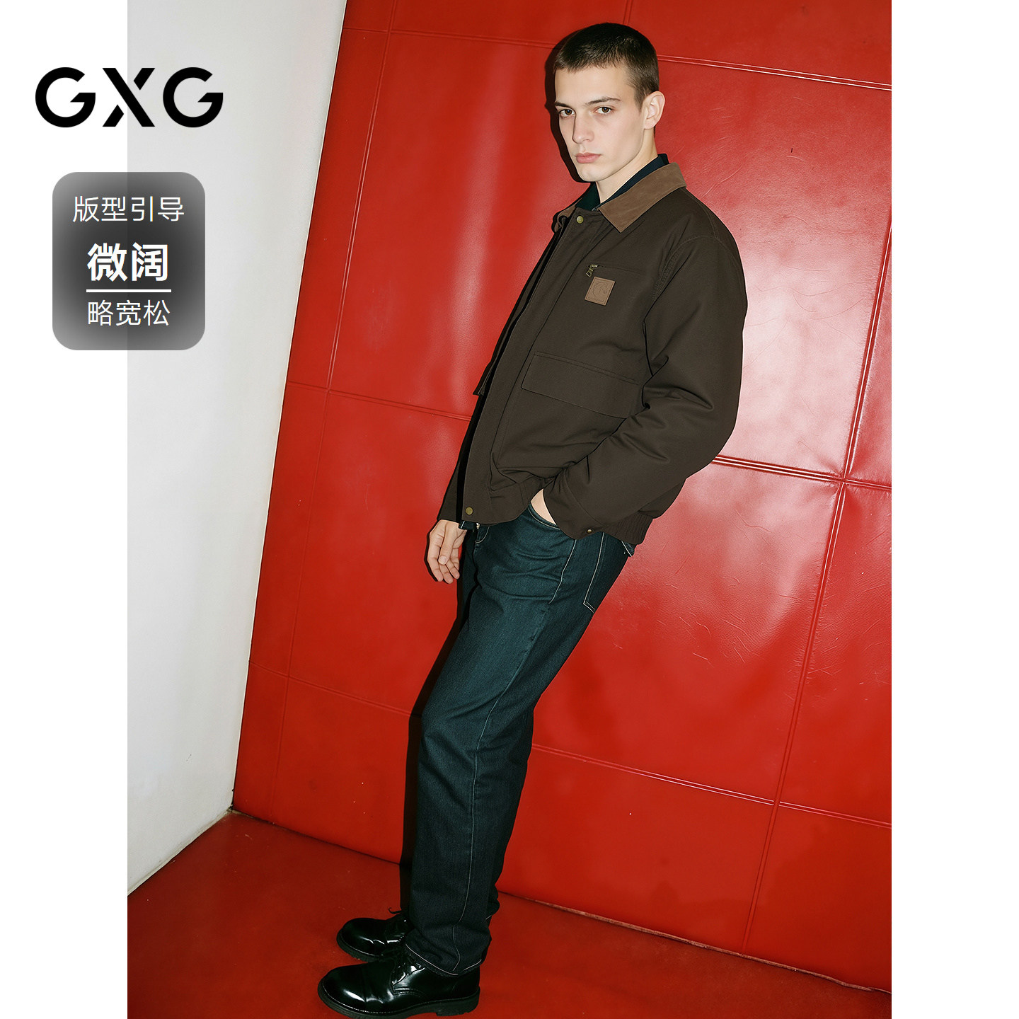三福2025冬季羽绒服男翻领工装衬衫式宽松双口袋保暖外套505281